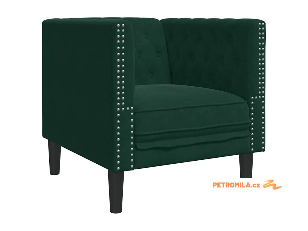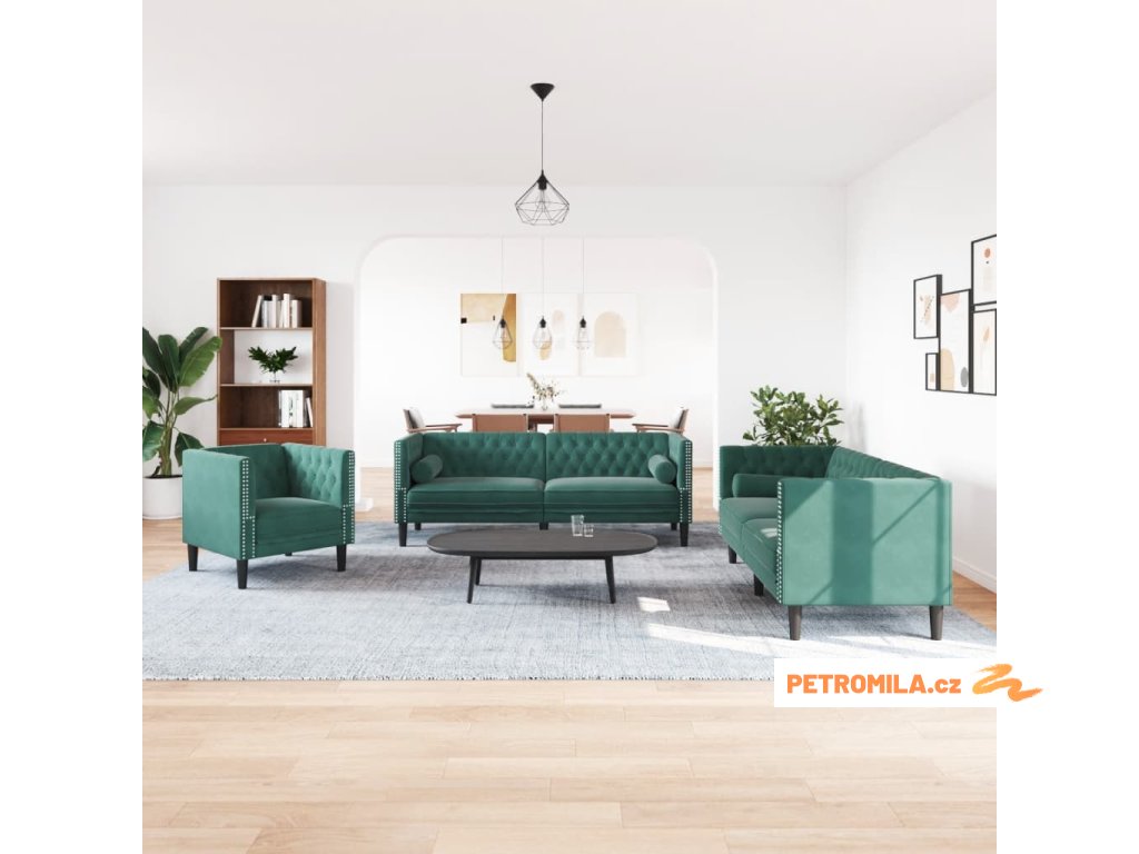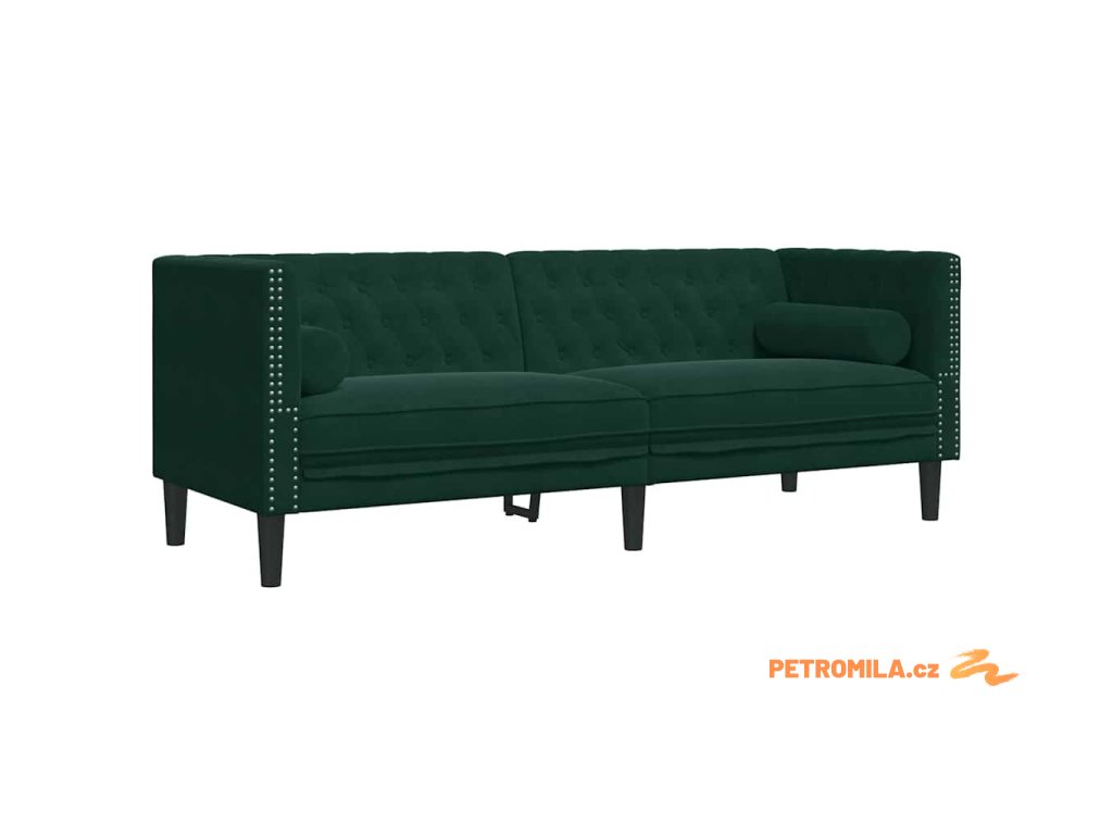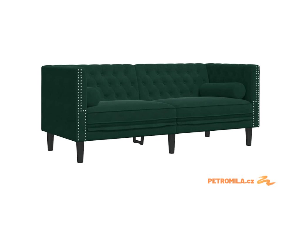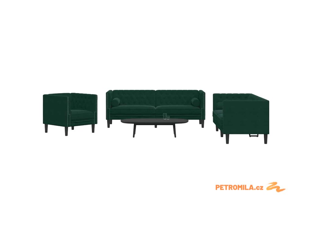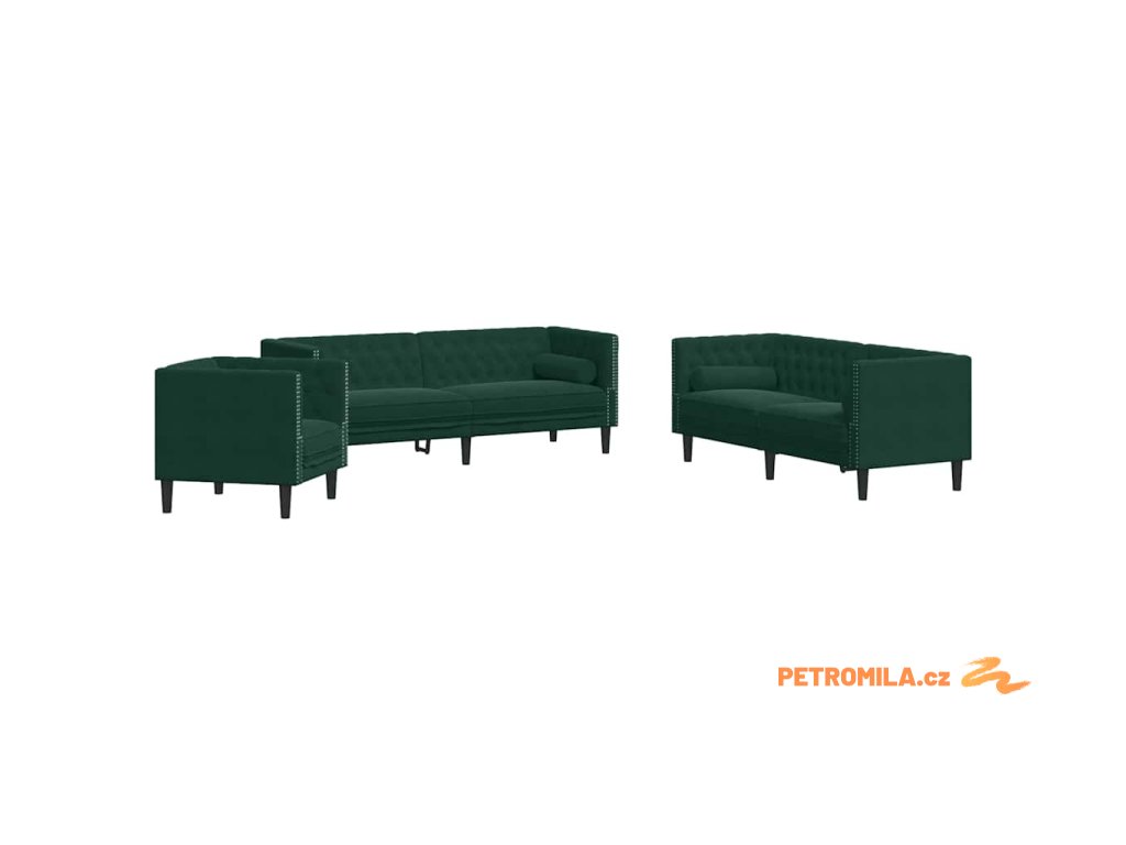 3dílná sedačka Chesterfield s podhlavníky tmavě zelená samet
