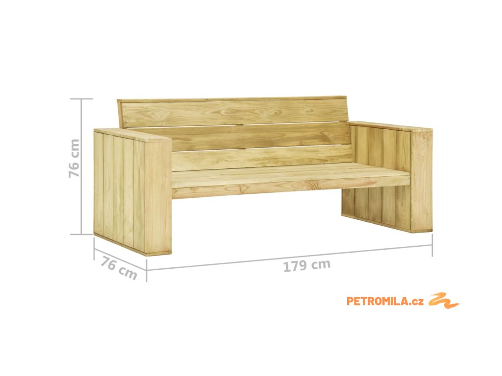 - Rozměry lavice: 179 x 76 x 76 cm (D x Š x V)