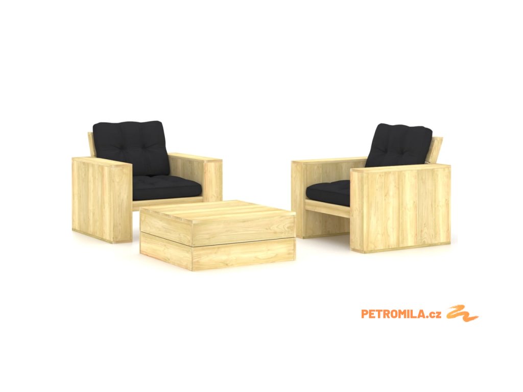 3dílná zahradní sedací souprava a podušky impregnovaná borovice