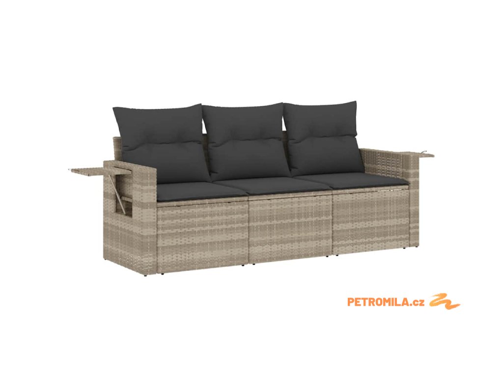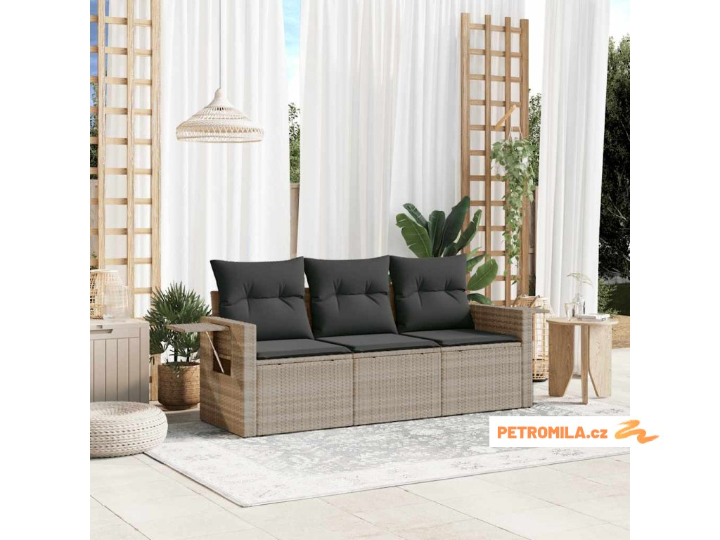 3dílná zahradní sedací souprava a podušky světle šedá polyratan