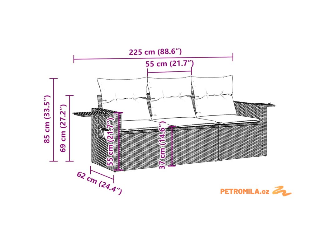 - Rozměry podušky na sedák: 55 x 55 x 3 cm (Š x H x T)