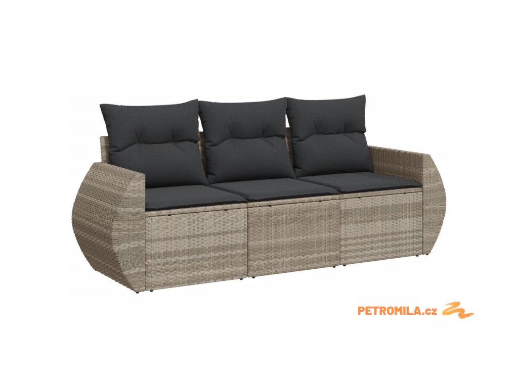 3dílná zahradní sedací souprava a podušky světle šedá polyratan