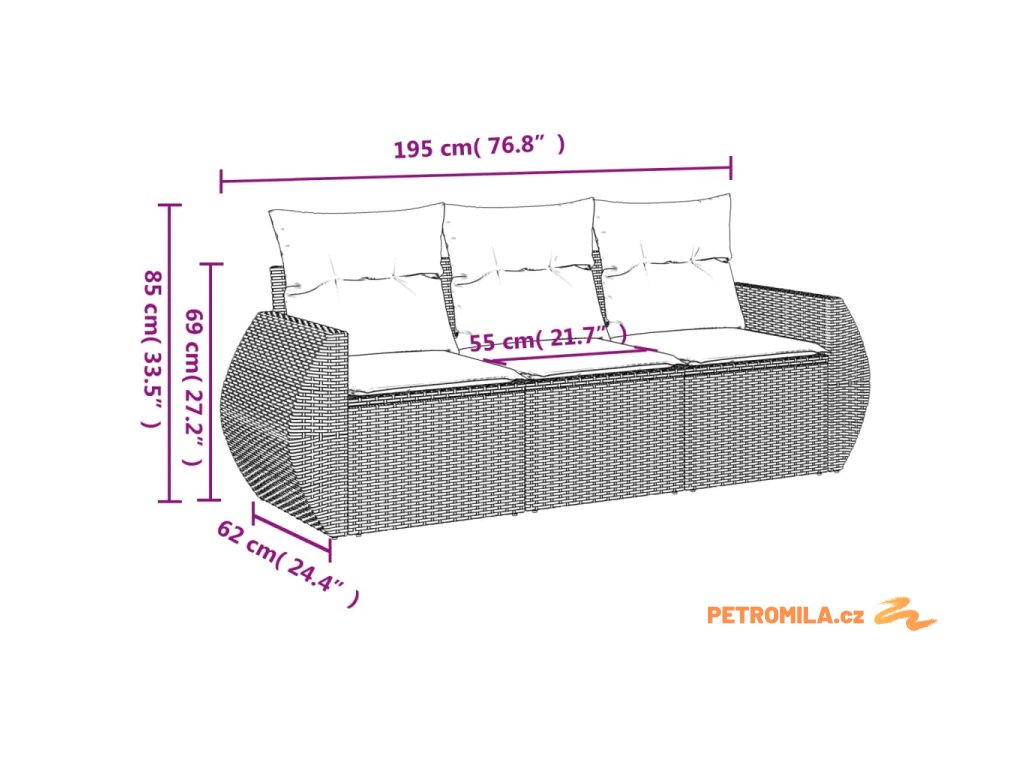 - 3x poduška na sedák s odnímatelným a pratelným potahem