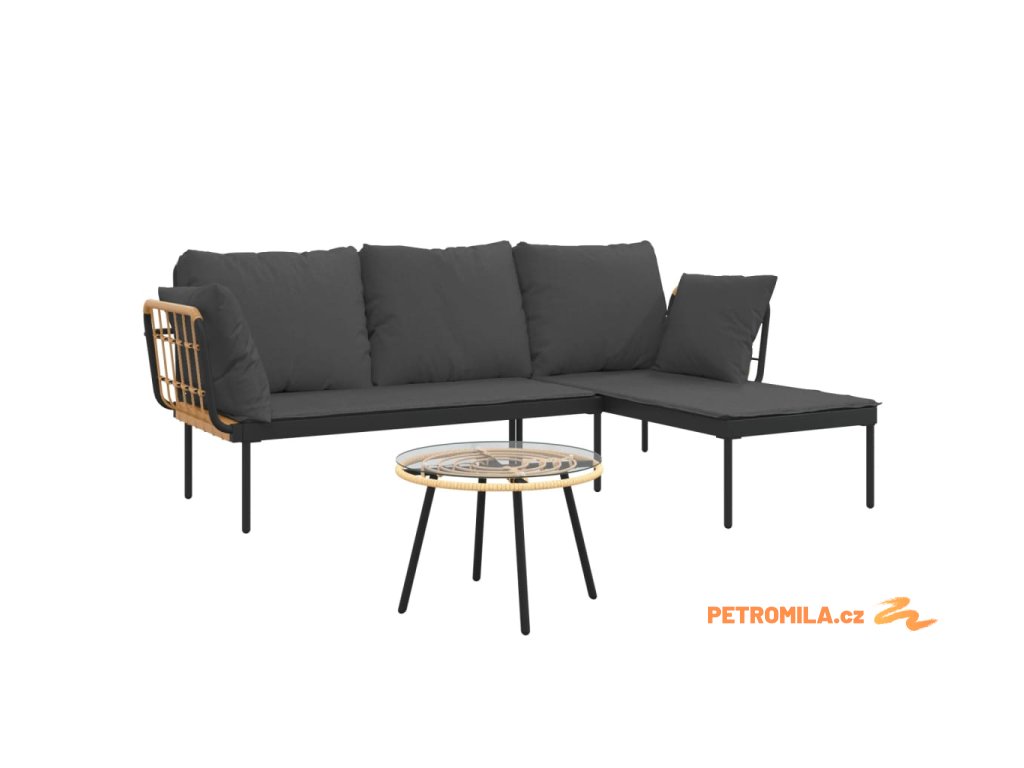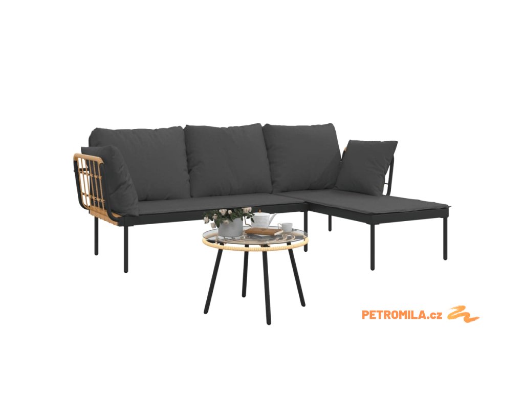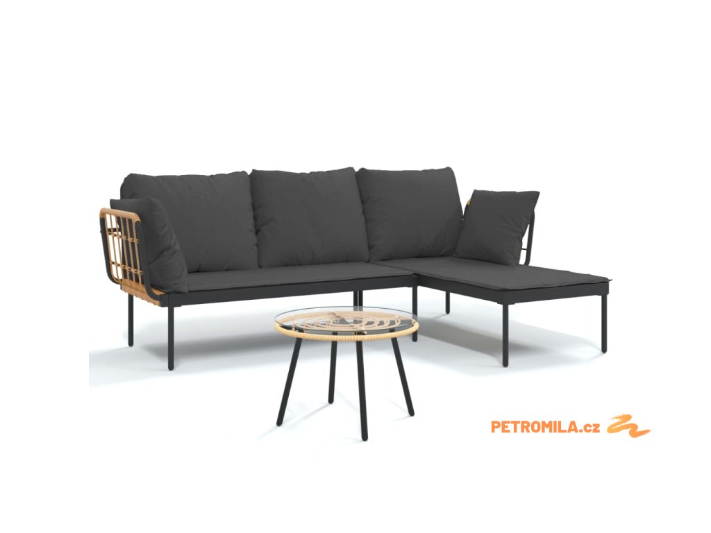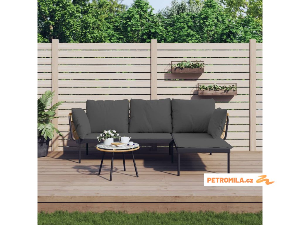 3dílná zahradní sedací souprava a tmavě šedé podušky polyratan