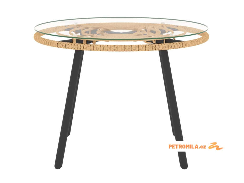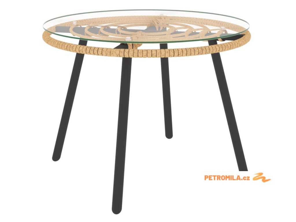 - Materiál: práškově lakovaná ocel, tvrzené sklo, PE ratan