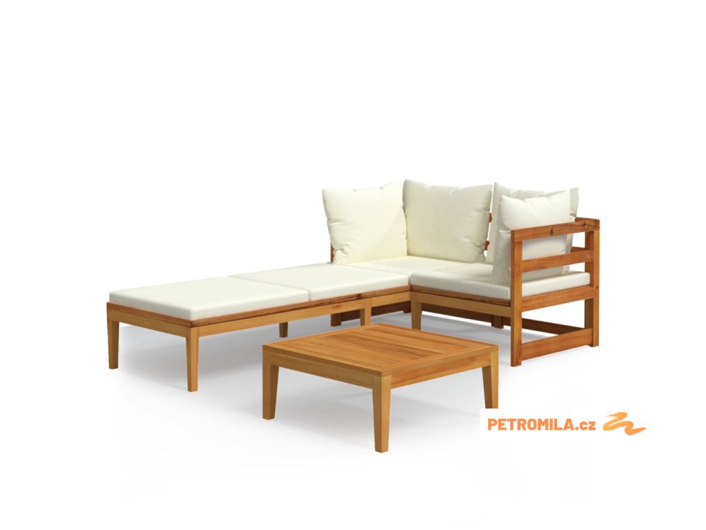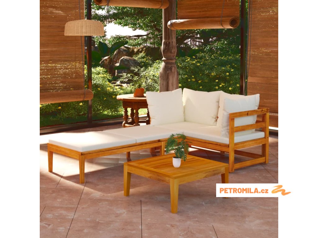 3dílná zahradní sedací souprava krémově bílé podušky akácie