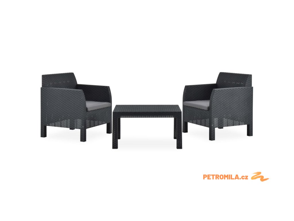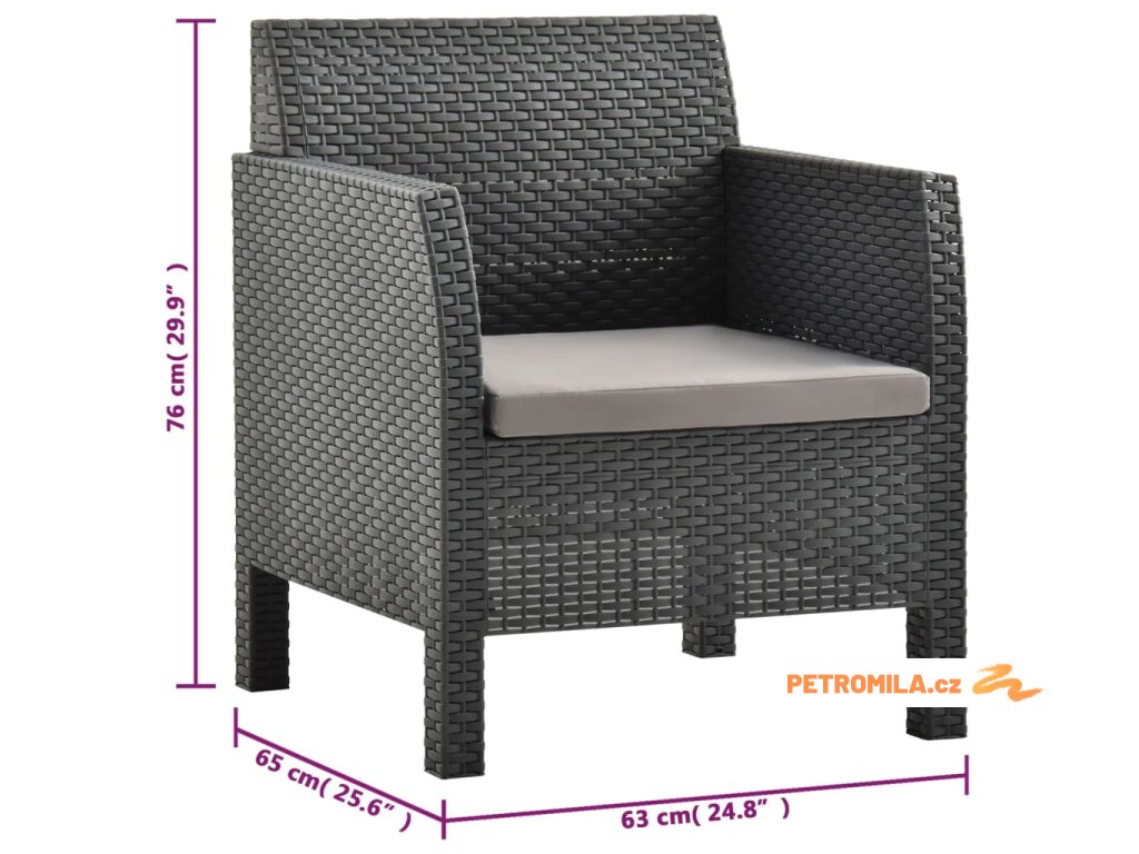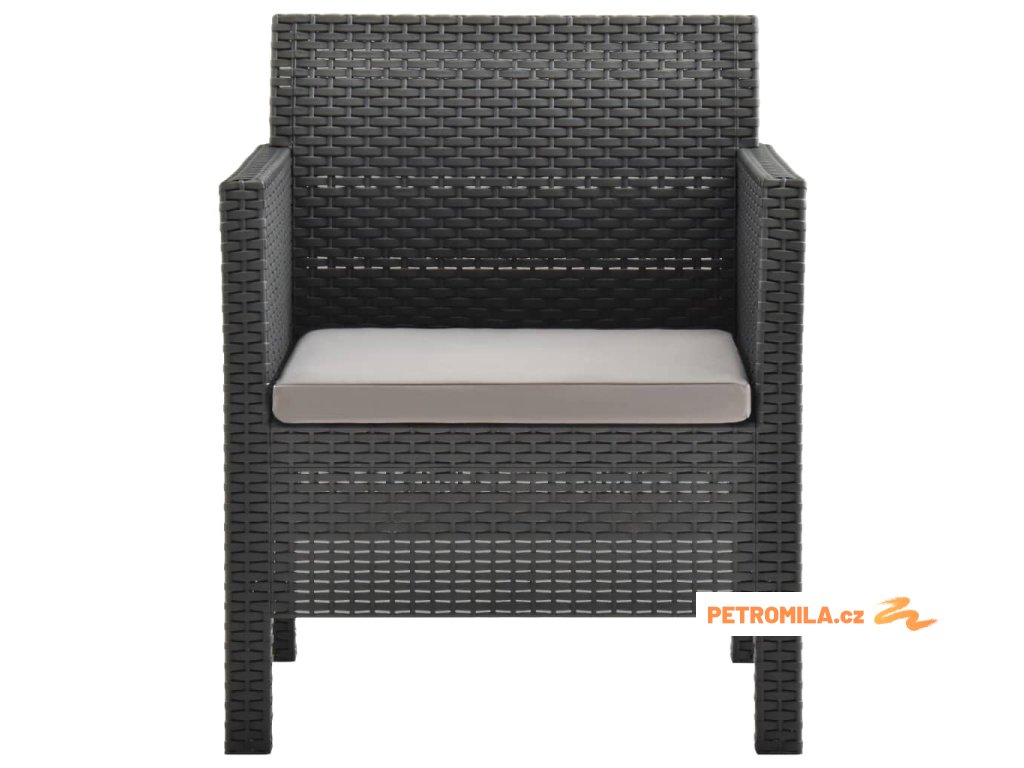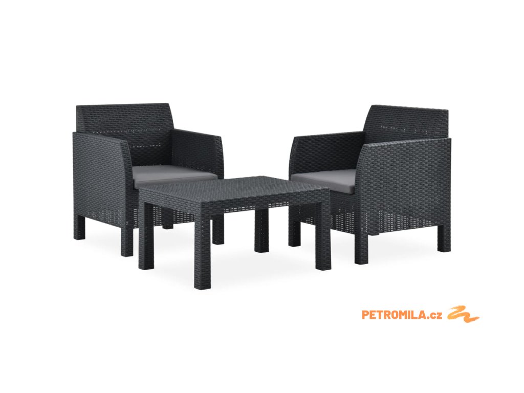 3dílná zahradní sedací souprava podušky PP ratan antracitová