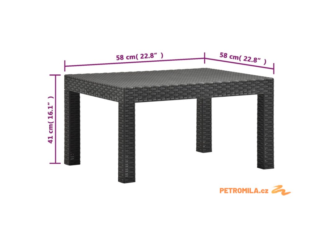 - Rozměry stolu: 58 x 58 x 41 cm (Š x H x V)