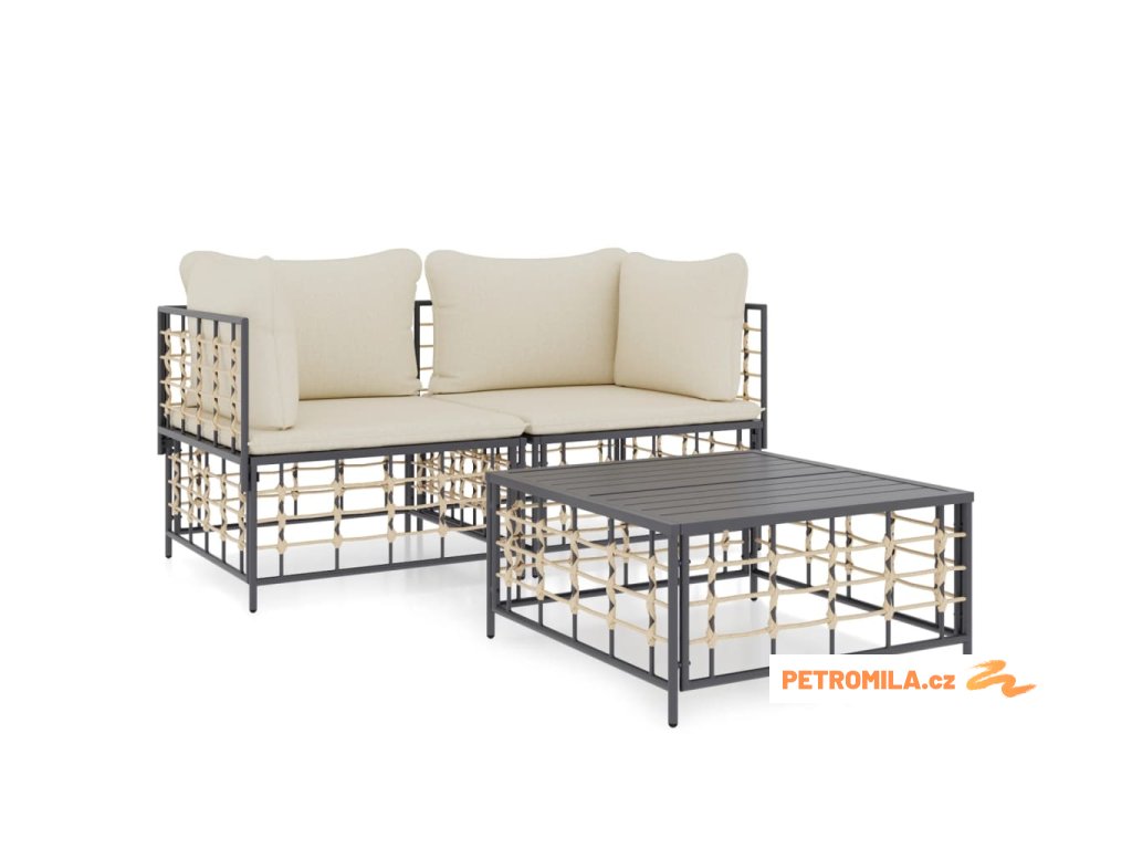 3dílná zahradní sedací souprava s poduškami antracit polyratan