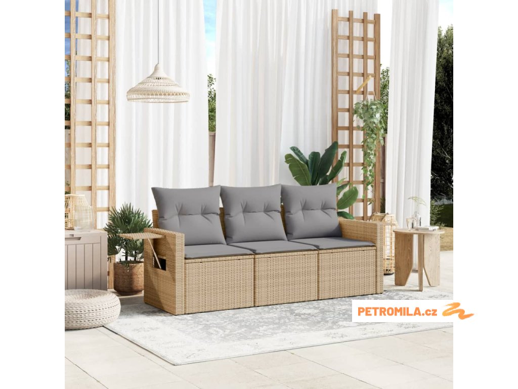 3dílná zahradní sedací souprava s poduškami béžová polyratan