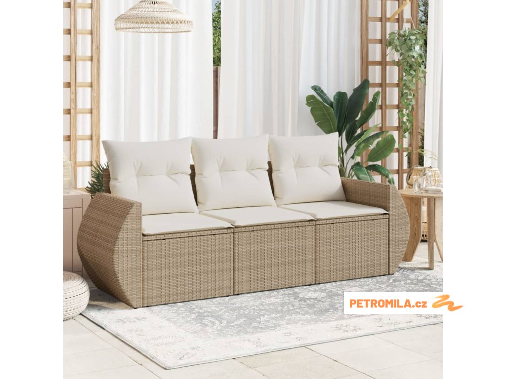 3dílná zahradní sedací souprava s poduškami béžová polyratan