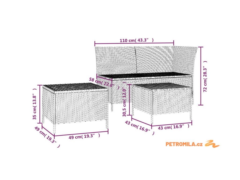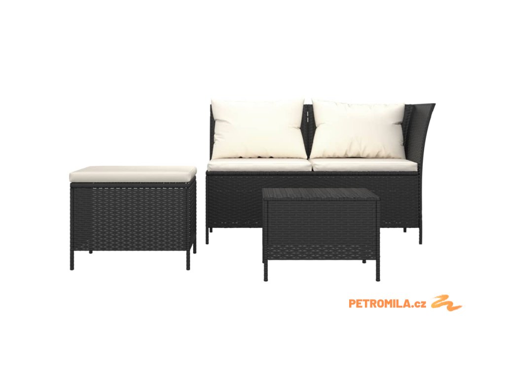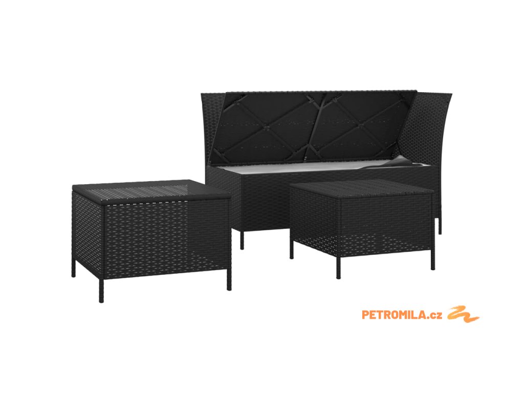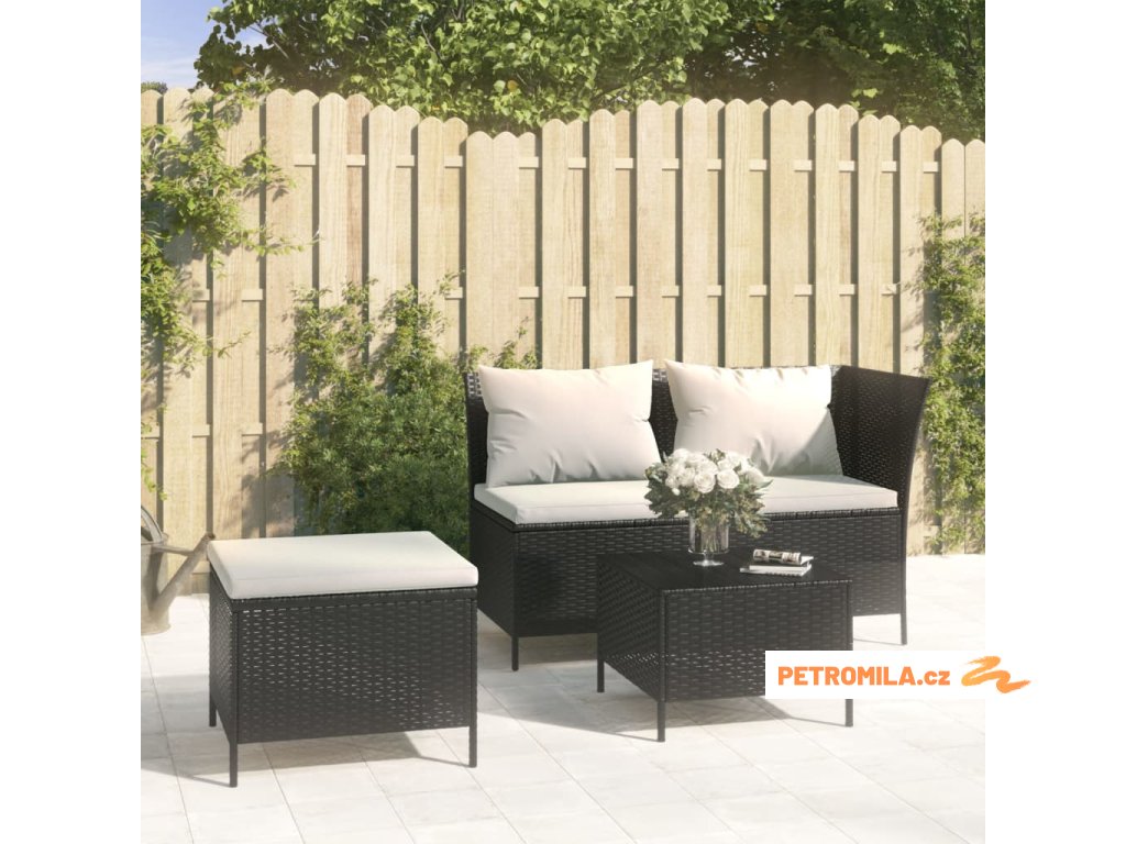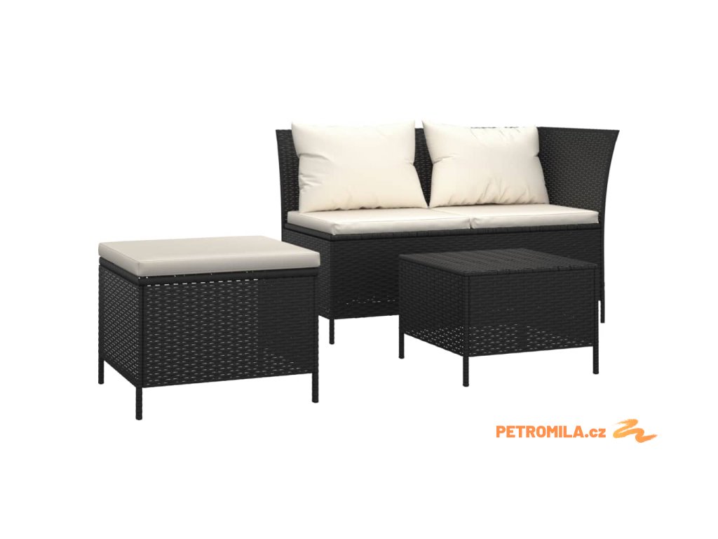 3dílná zahradní sedací souprava s poduškami černá polyratan