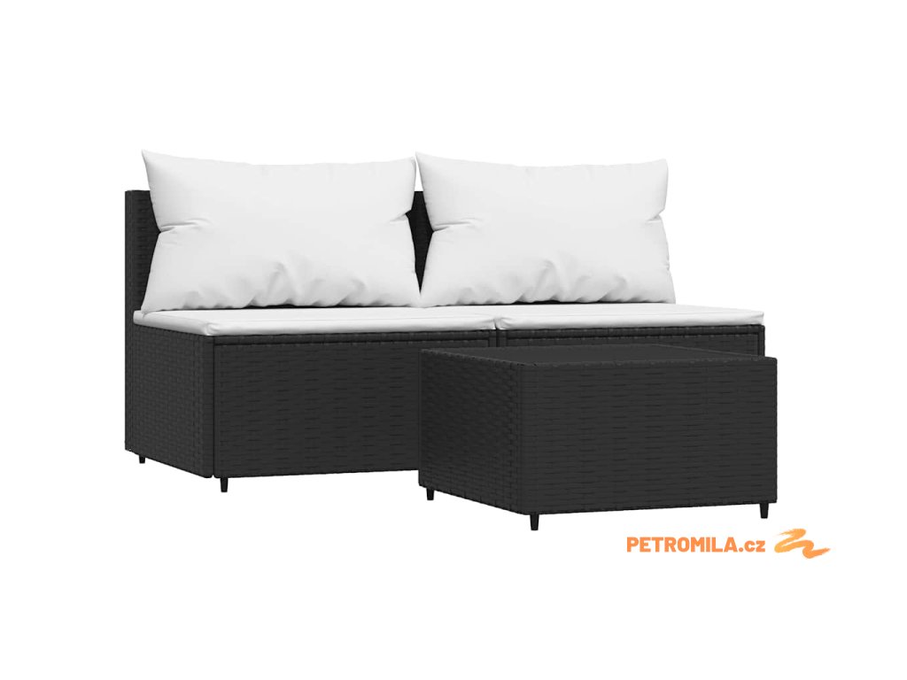 3dílná zahradní sedací souprava s poduškami černá polyratan