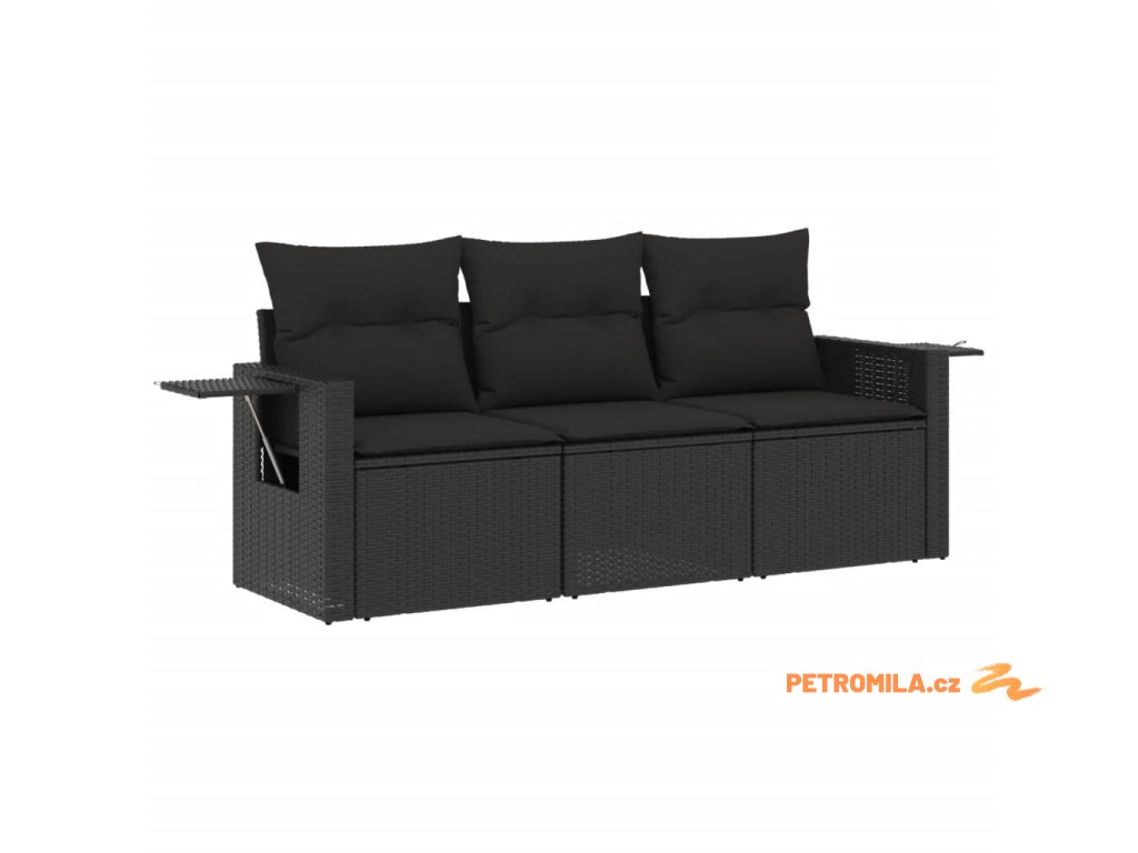 3dílná zahradní sedací souprava s poduškami černá polyratan