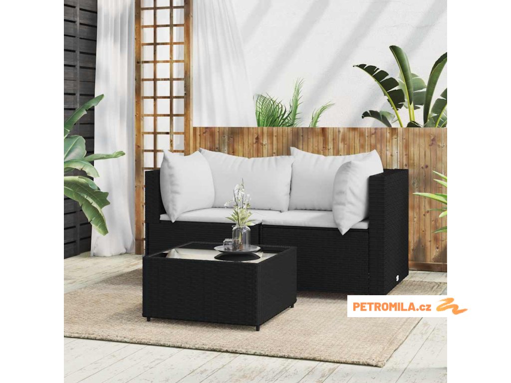 3dílná zahradní sedací souprava s poduškami černá polyratan
