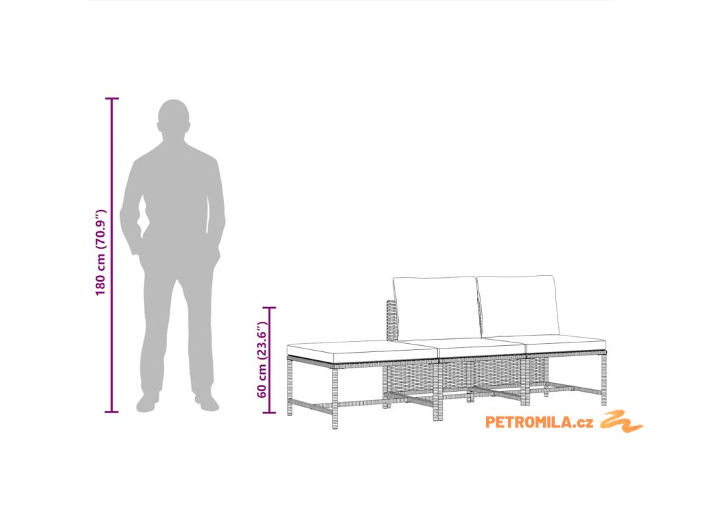 - Rozměry středové pohovky: 54 x 60 x 60 cm (Š x H x V)