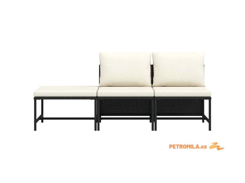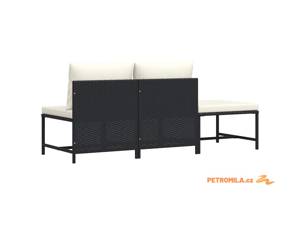 3dílná zahradní sedací souprava s poduškami černá polyratan