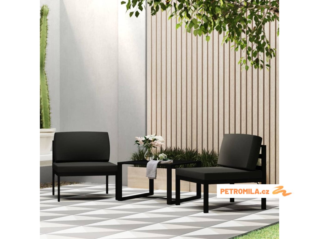 3dílná zahradní sedací souprava s poduškami hliník antracitová