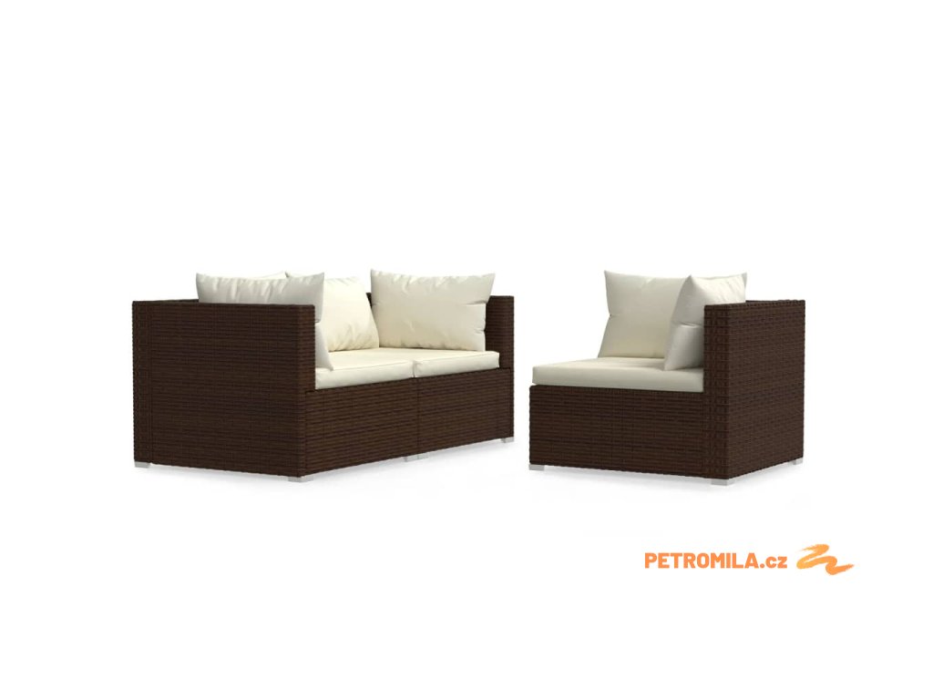 3dílná zahradní sedací souprava s poduškami hnědá polyratan