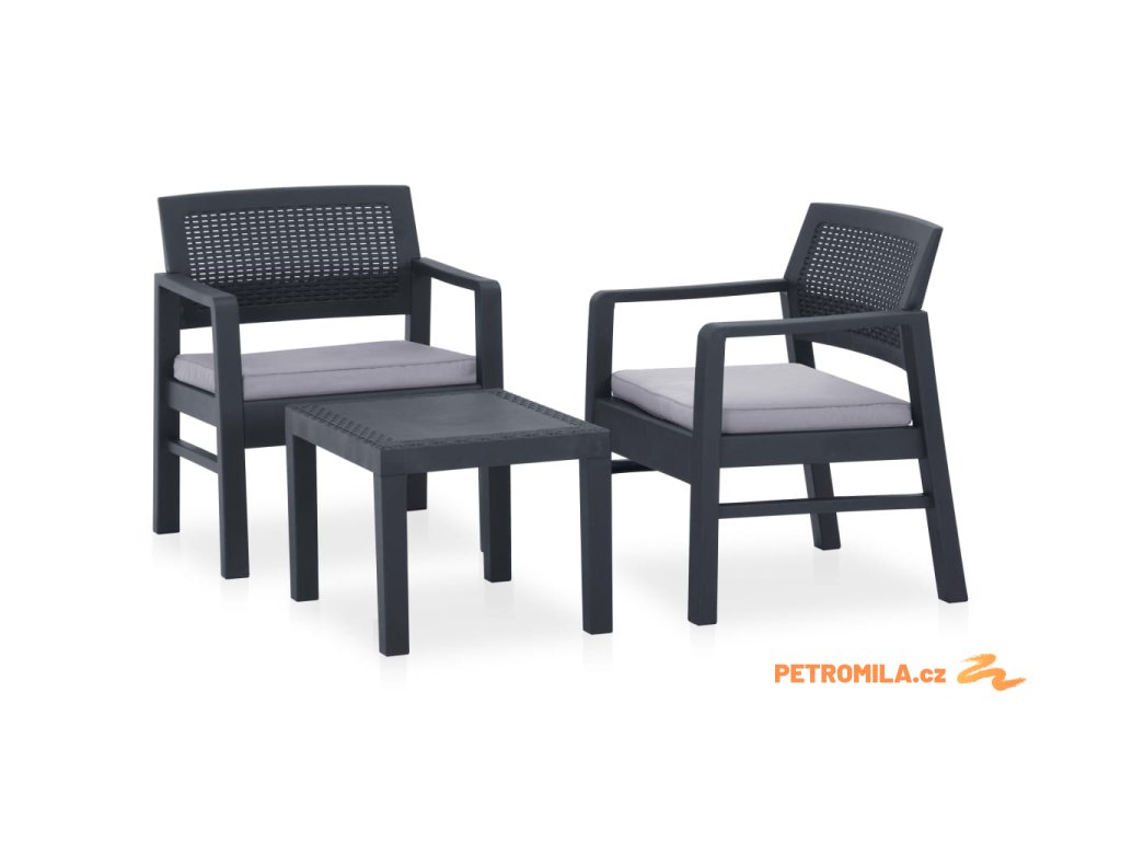 Zahradní sedací souprava je vyrobená z plastu, který se snadno čistí a je stabilní. Na bytelnou stolní desku si můžete pohodlně a v dosahu ruky odkládat vaše občerstvení a nápoje. Komfort při sezení zaručují pohodlné podušky.