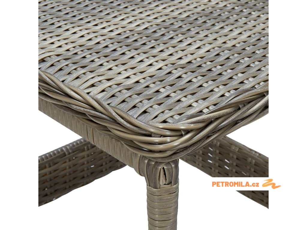 - Materiál: kulatý PE ratan, práškově lakovaná ocel, PP deska