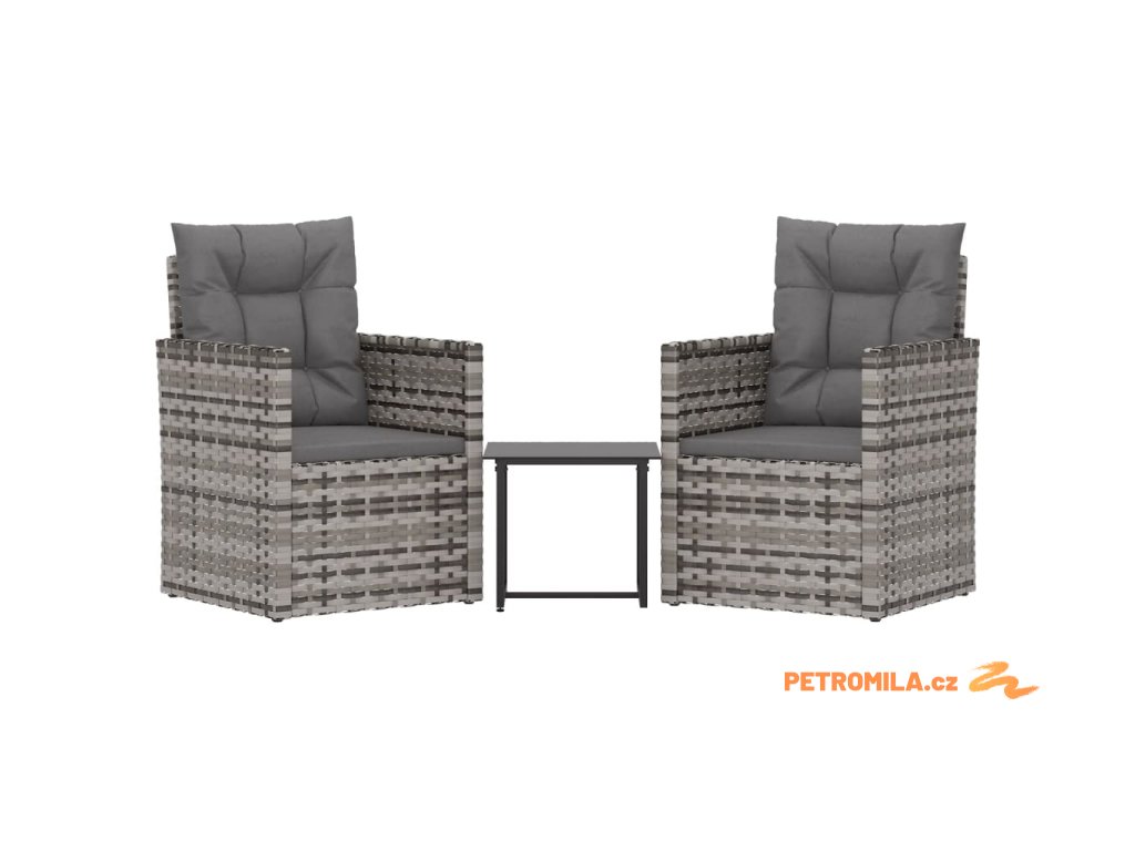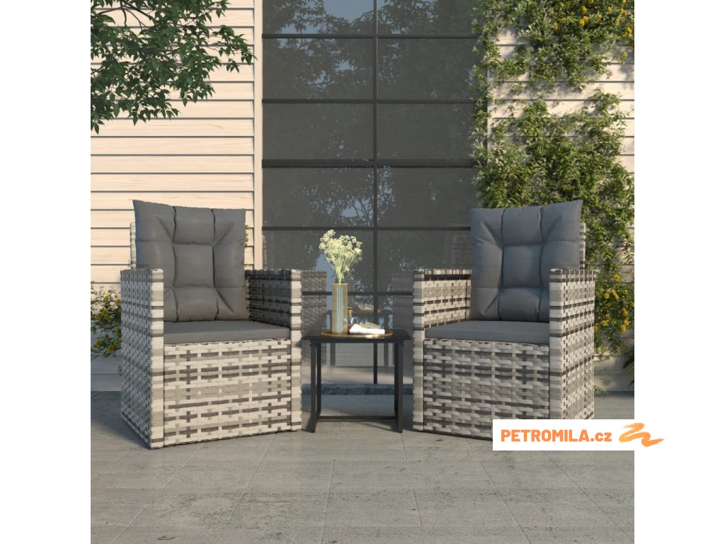 3dílná zahradní sedací souprava s poduškami polyratan šedá