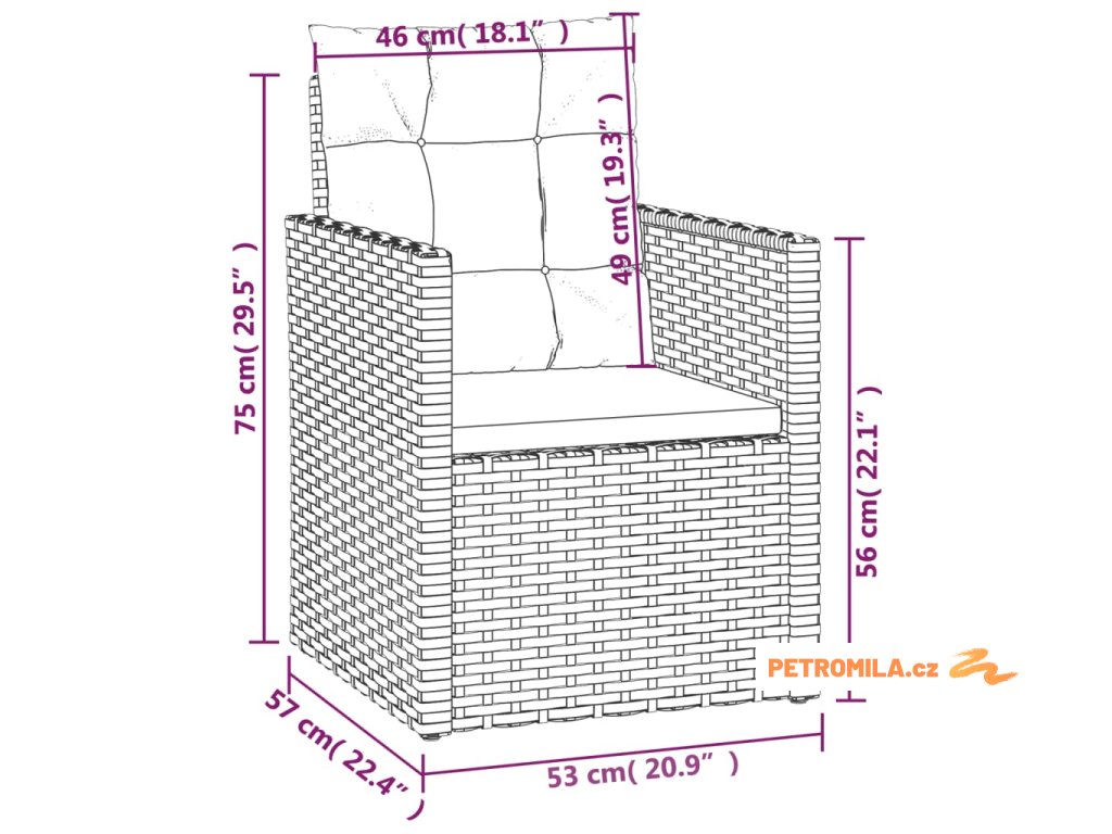 - Rozměry křesla: 53 x 57 x 75 cm (Š x H x V)