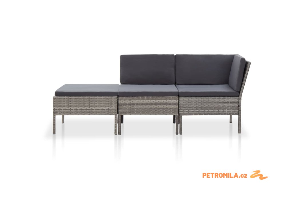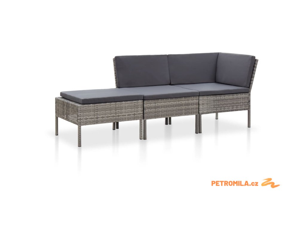 3dílná zahradní sedací souprava s poduškami polyratan šedá