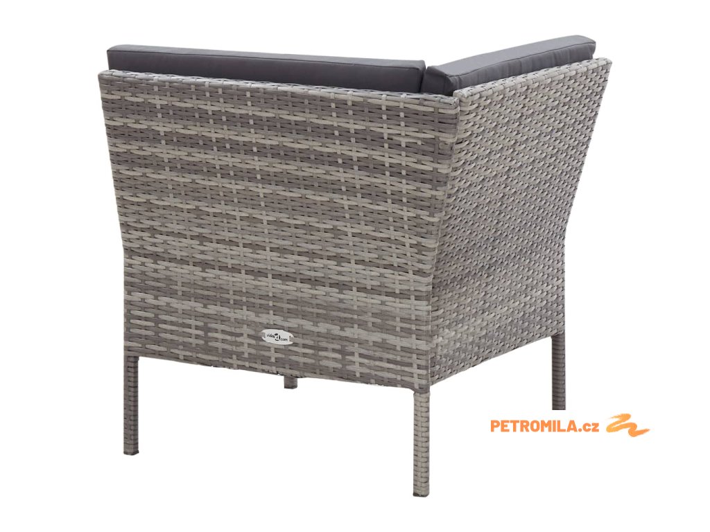 - Materiál: PE (polyetylenový) ratan, ocelový rám s práškovým nástřikem