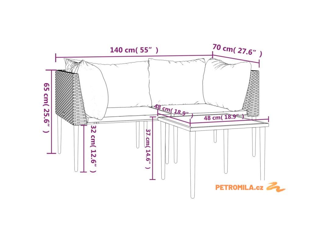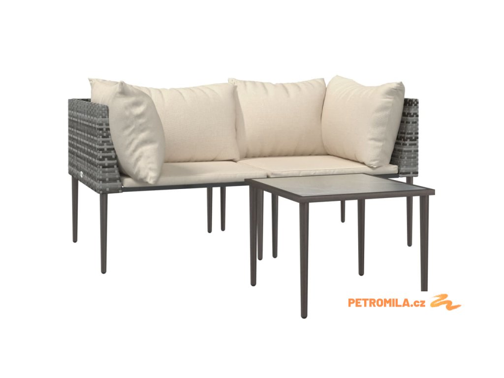 3dílná zahradní sedací souprava s poduškami šedá polyratan