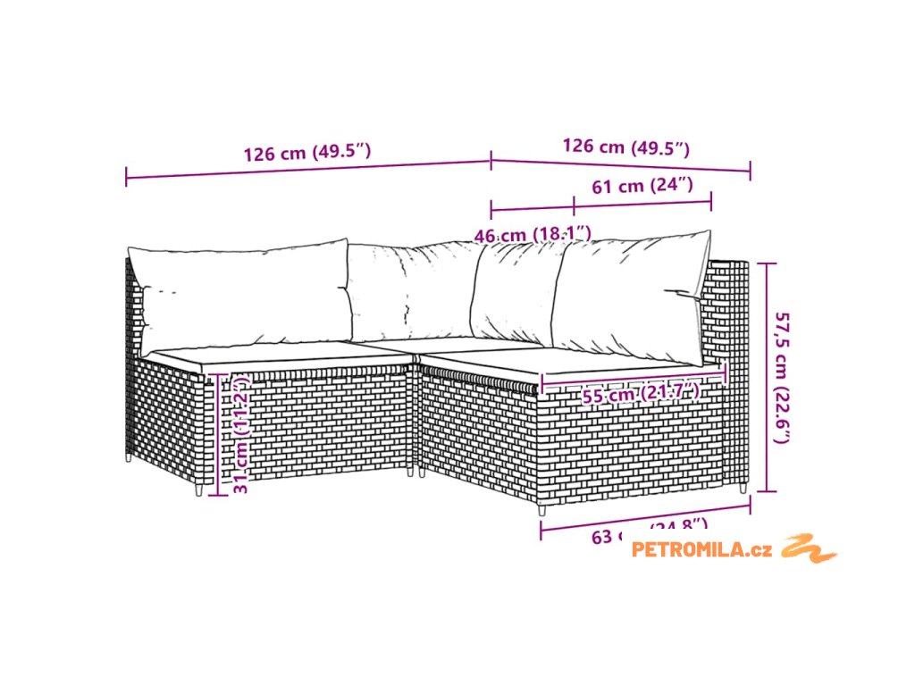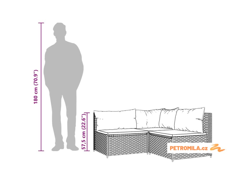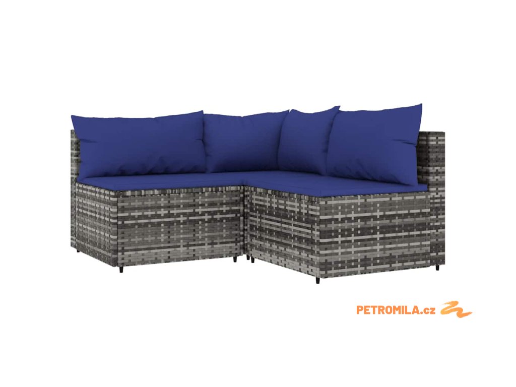 3dílná zahradní sedací souprava s poduškami šedá polyratan