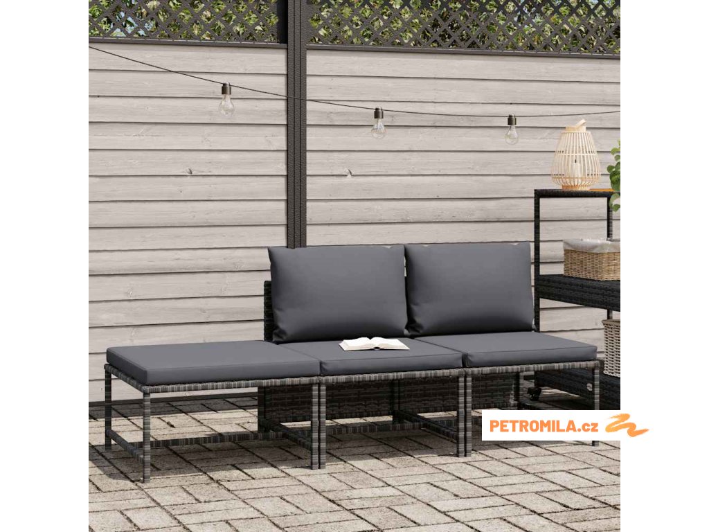 3dílná zahradní sedací souprava s poduškami šedá polyratan