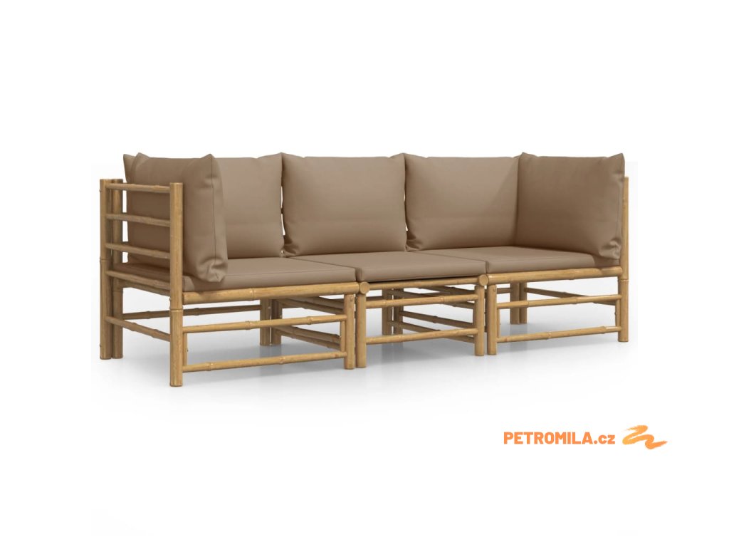 3dílná zahradní sedací souprava s taupe poduškami bambus