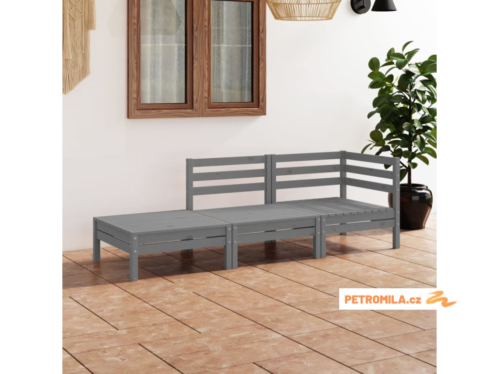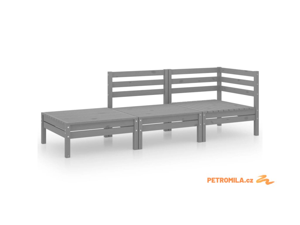 3dílná zahradní sedací souprava šedá masivní borovice