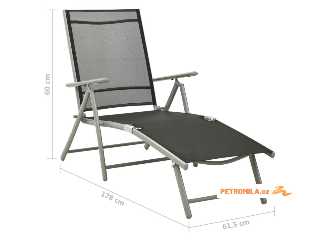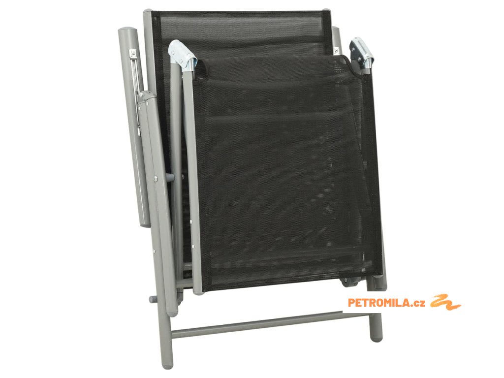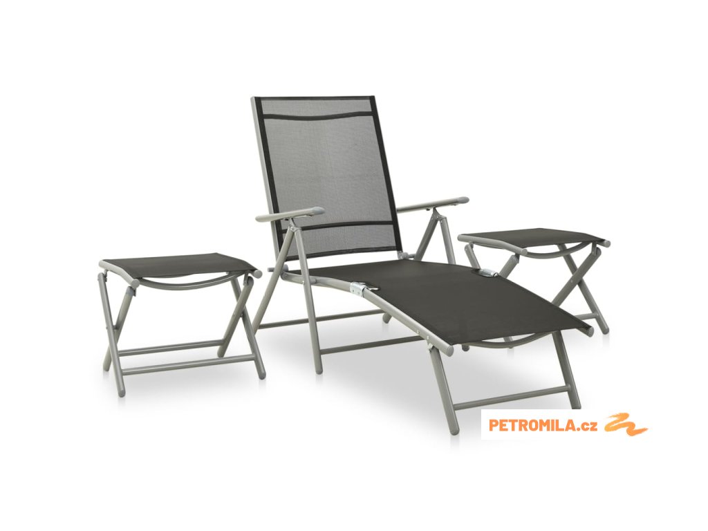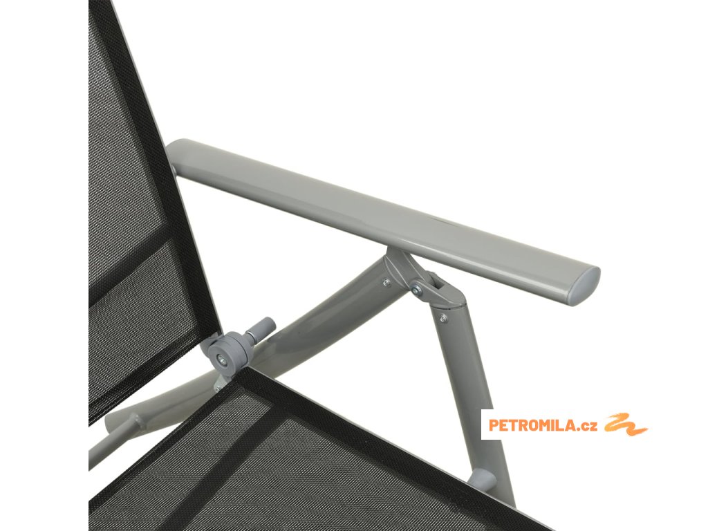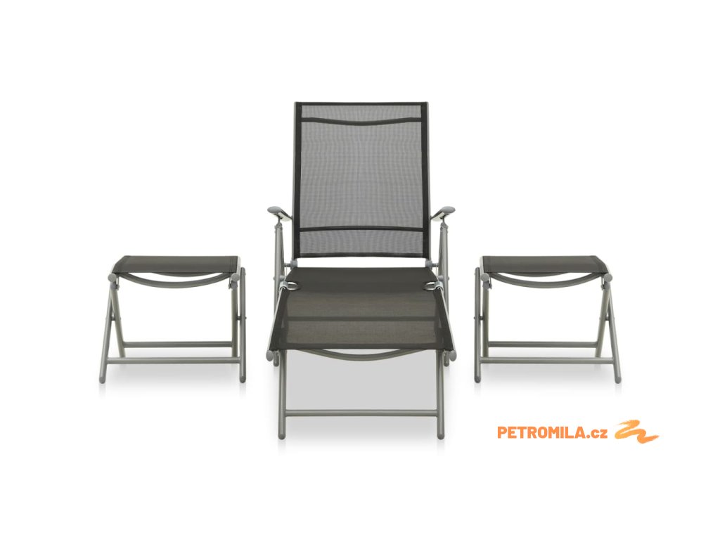 Nábytek má rám z práškově lakovaného hliníku, takže je odolný a vydrží vám sloužit na věky věků. Křeslo má polohovací opěradlo, abyste si mohli vždycky vybrat tu nejpříjemnější pozici. Sedák z prodyšného textilenu je nesmírně pohodlný. Podnožky se vám navíc postarají o maximální komfort. Můžete je také použít jako konferenční stolky, na které si odložíte pití či jídlo, abyste je měli hezky po ruce.