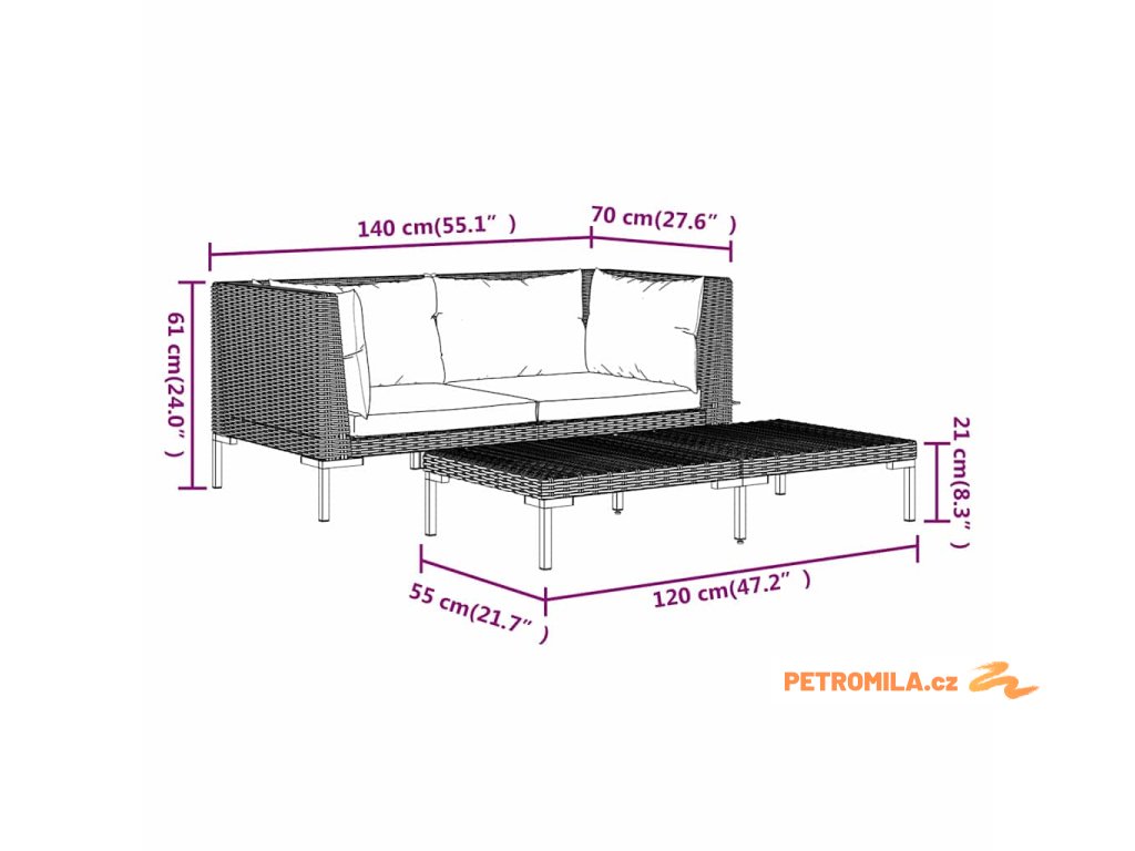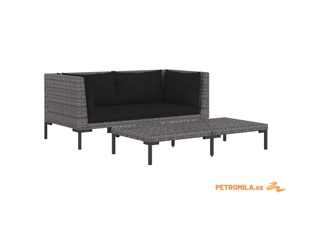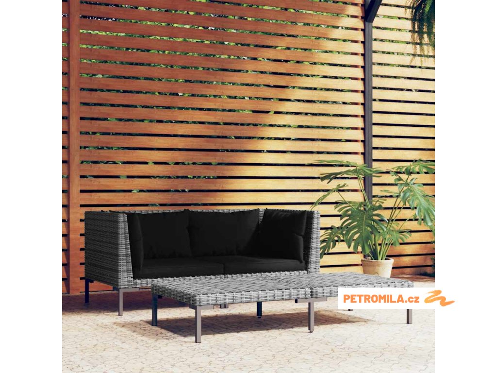 3dílná zahradní sedací souprava tmavě šedá polokulatý polyratan