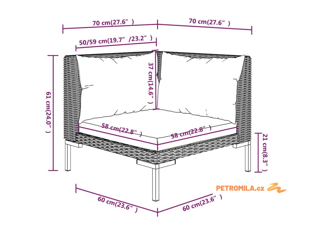 - Rozměry podušky na sedák: 58 x 58 cm (Š x H)