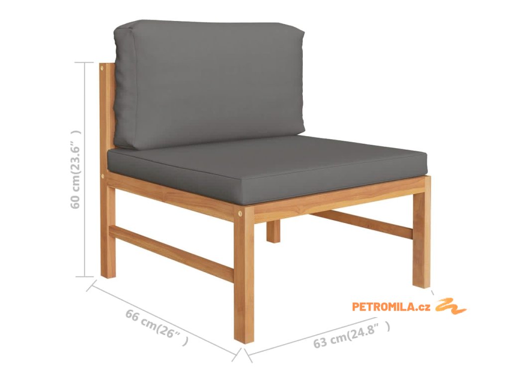 3dílná zahradní sedací souprava tmavě šedé podušky teak
