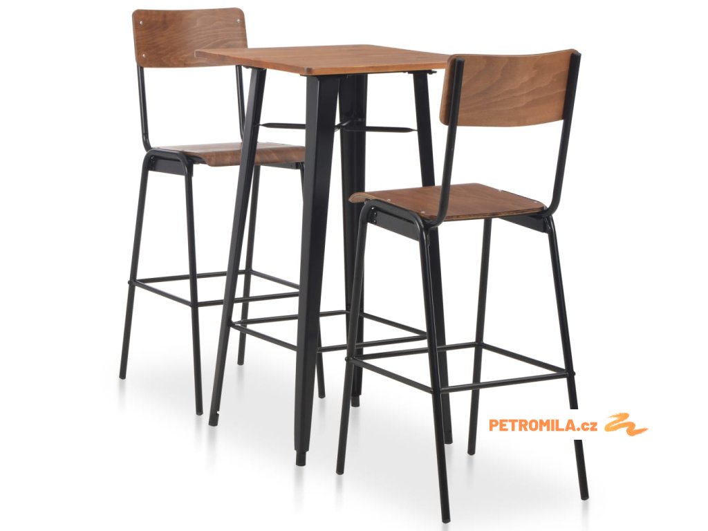 Barové stoličky jsou vyrobeny z masivní překližky, a proto jsou velmi stabilní, odolné a snadno se čistí pouze navlhčeným hadříkem. Stolní deska z masivního borového dřeva poskytuje pak stabilní místo pro vaše pokrmy. Ocelové nohy s práškovým nástřikem jsou zárukou stability stolu a židlí.