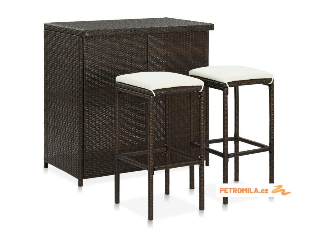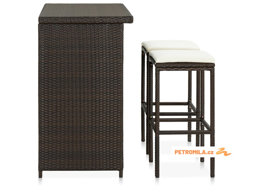 Bistro jídelní set má pevný ocelový rám, takže je velmi stabilní. PE ratan má dlouhou životnost a je odolný vůči povětrnostním vlivům a vhodný pro každodenní použití. Tento hospodský set má lehkou konstrukci a snadno se přenáší. Podušky na sedák a vestavěná opěrka nohou přispívají k pohodlnému posezení. Polyesterový potah na podušku se skrytým zipem lze sundat a vyprat. Barový stůl má také dvě poličky, kde najdete dostatek úložného prostoru, aby byly vaše důležité věci uspořádané a na dosah.