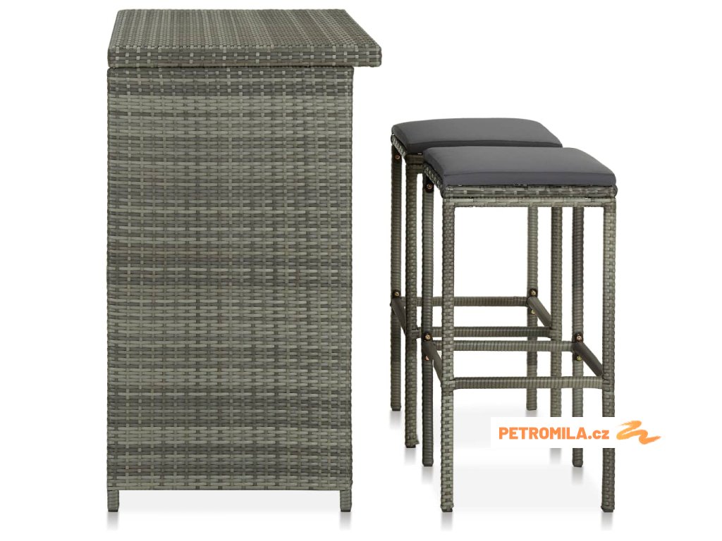 Bistro jídelní set má pevný ocelový rám, takže je velmi stabilní. PE ratan má dlouhou životnost a je odolný vůči povětrnostním vlivům a vhodný pro každodenní použití. Tento hospodský set má lehkou konstrukci a snadno se přenáší. Podušky na sedák a vestavěná opěrka nohou přispívají k pohodlnému posezení. Polyesterový potah na podušku se skrytým zipem lze sundat a vyprat. Barový stůl má také dvě poličky, kde najdete dostatek úložného prostoru, aby byly vaše důležité věci uspořádané a na dosah.