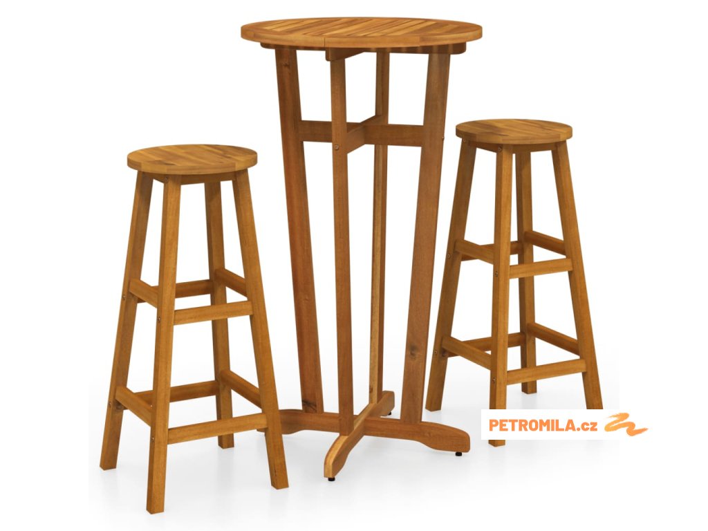 3dílný barový set masivní akáciové dřevo