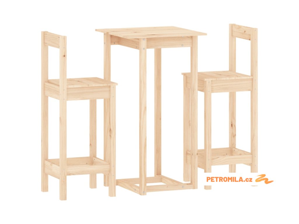 - Masivní borové dřevo: Barový set je vyroben z masivní borovice. Masivní borové dřevo je krásný přírodní materiál. Má rovnou kresbu a obsahuje suky, které materiálu dodávají jeho charakteristický, rustikální vzhled.