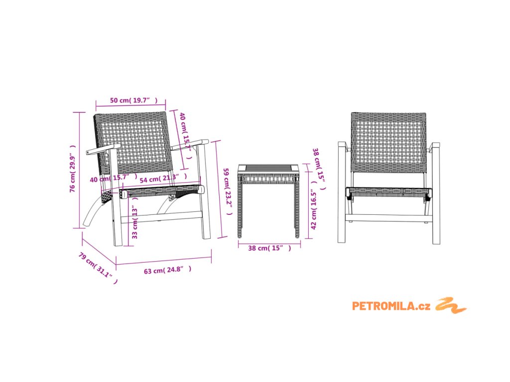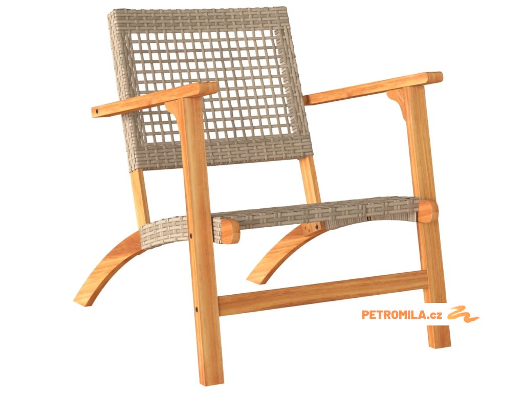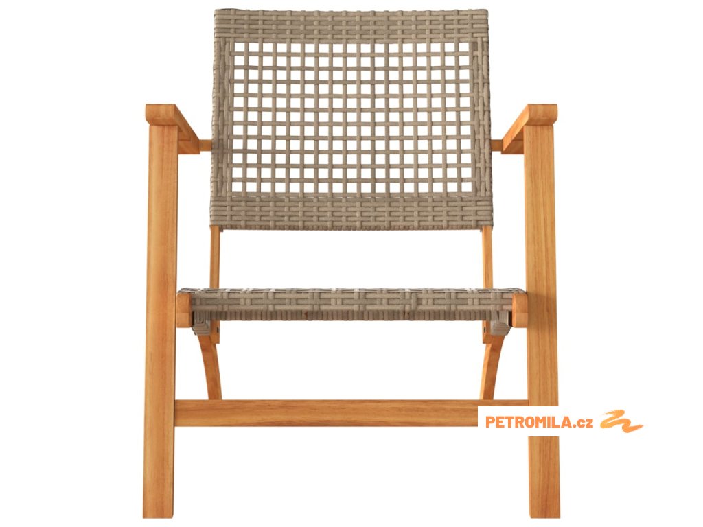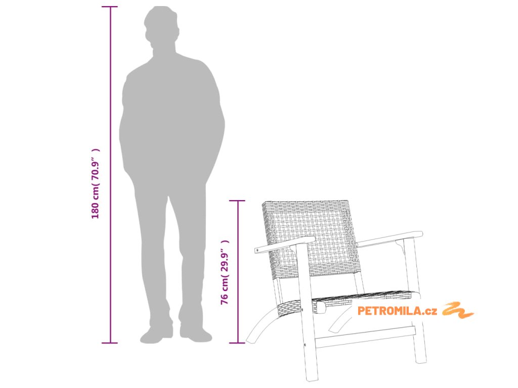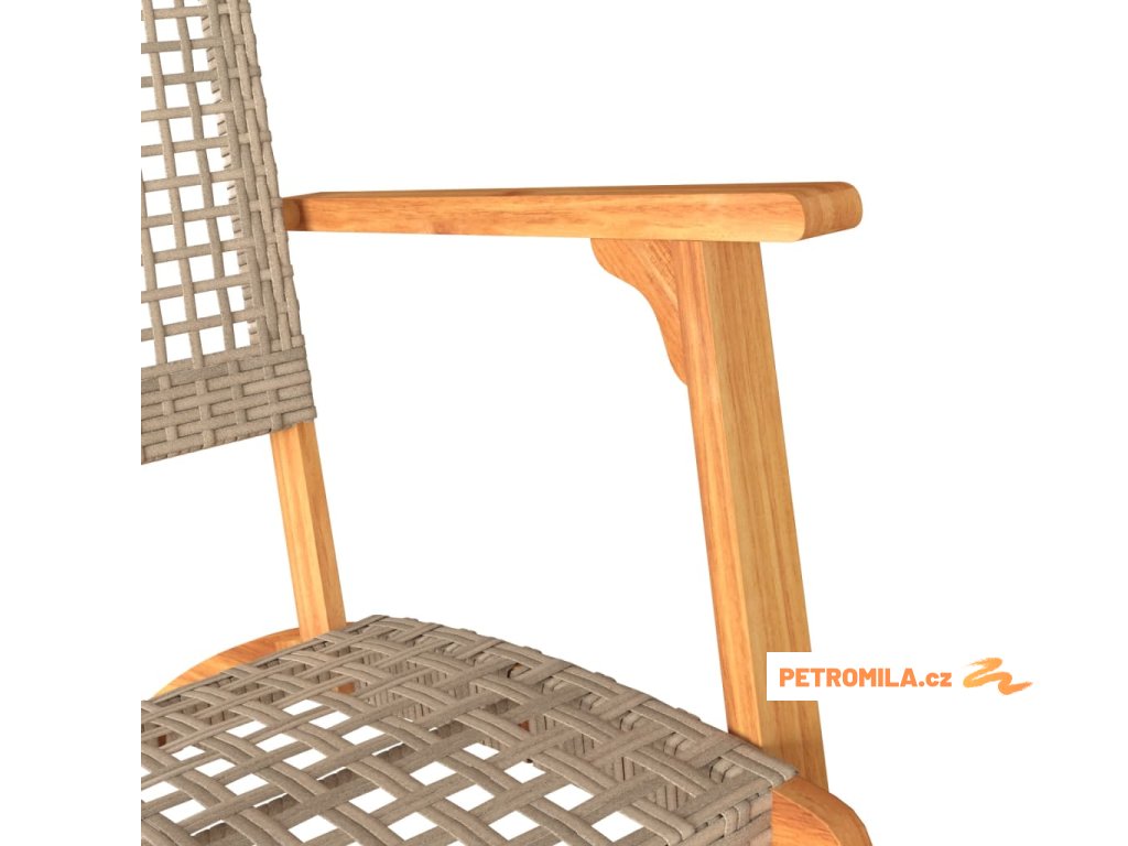 - Materiál: PE ratan, práškově lakovaná ocel, masivní akáciové dřevo s olejovou povrchovou úpravou