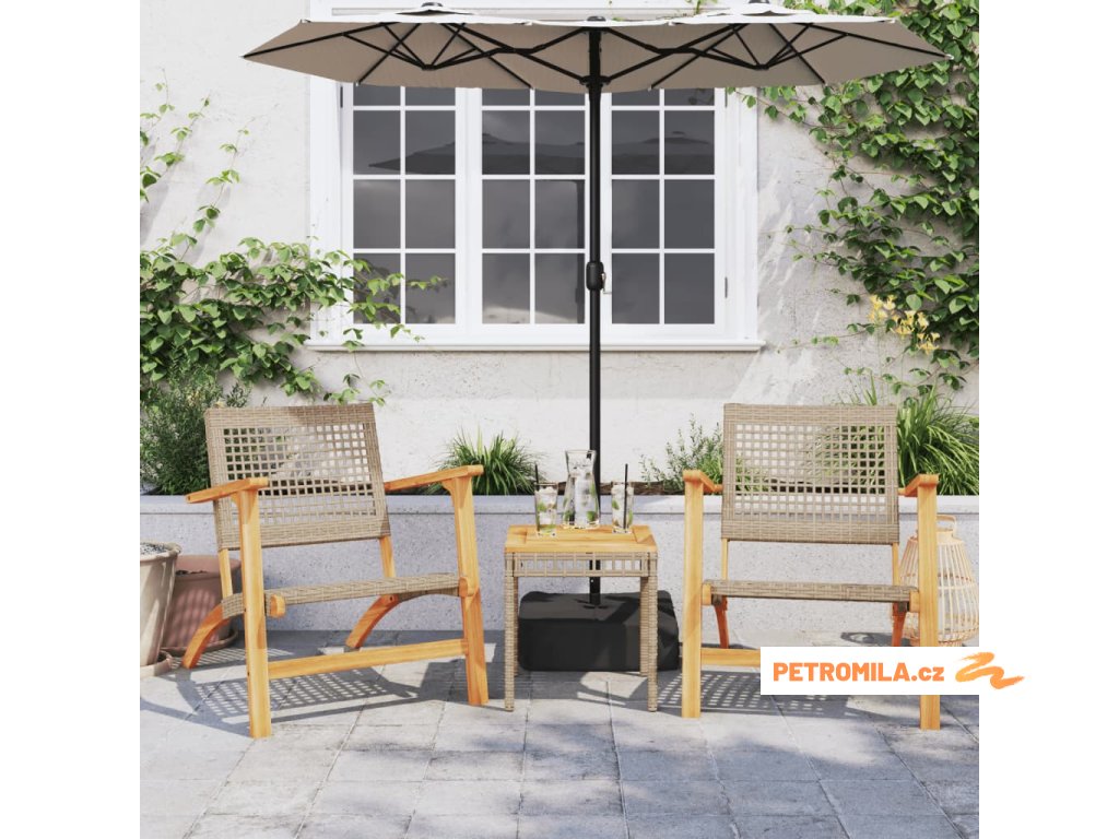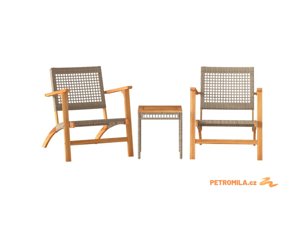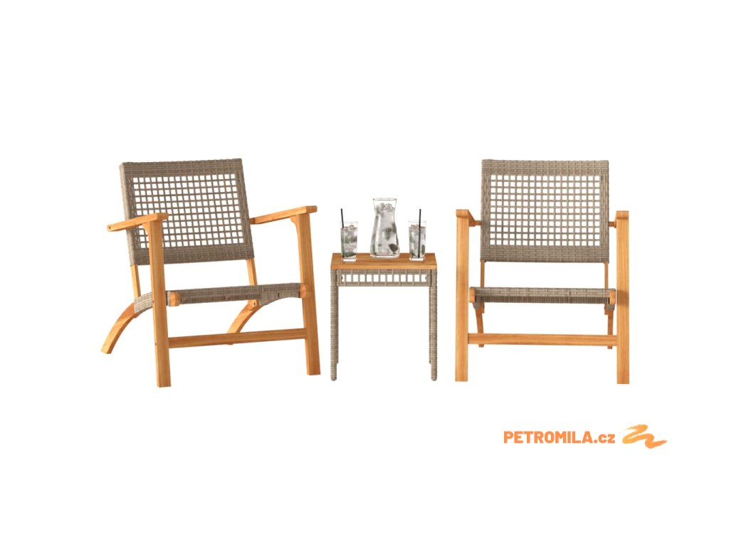3dílný bistro set béžový polyratan a masivní akáciové dřevo
