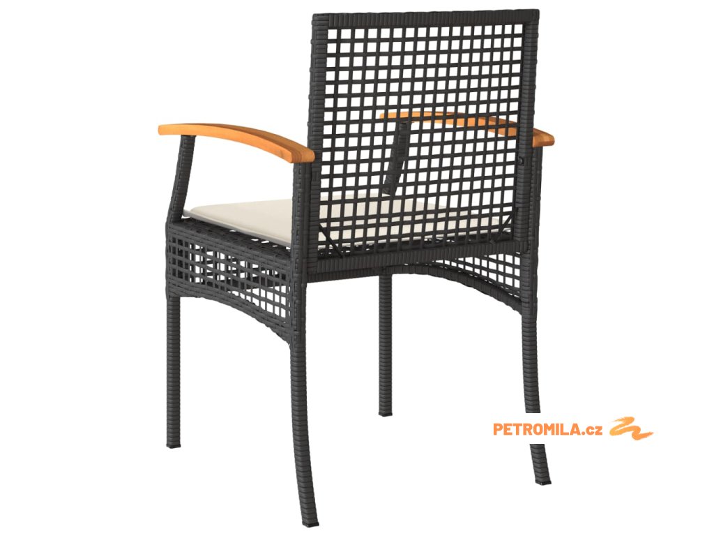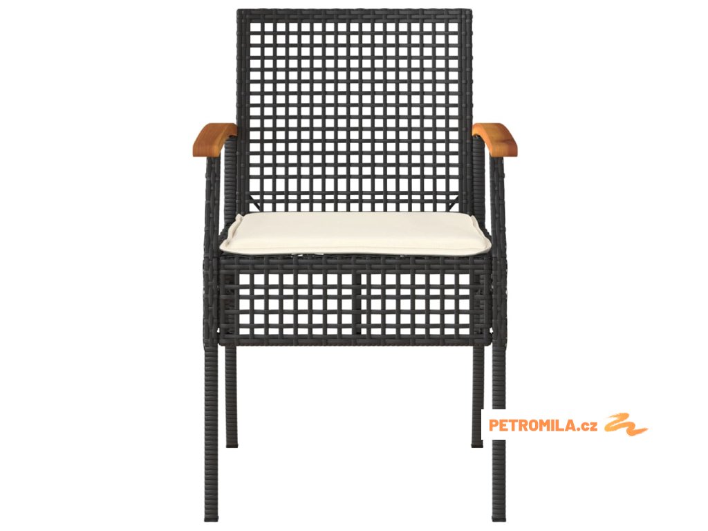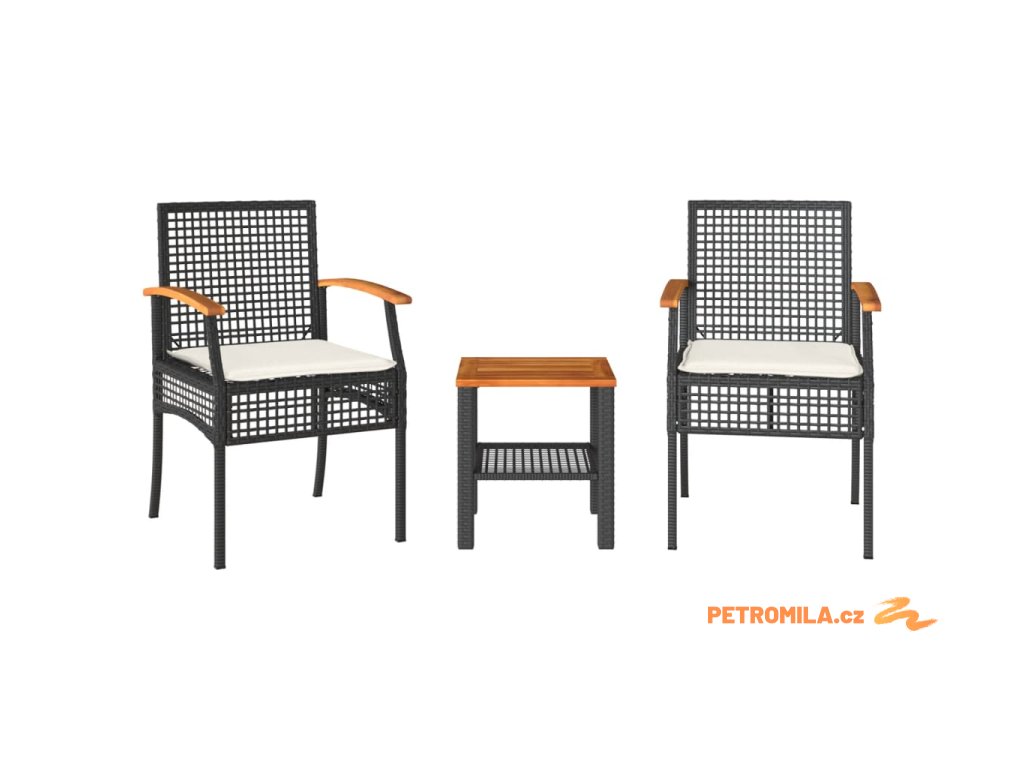 3dílný bistro set s poduškami černý polyratan akáciové dřevo