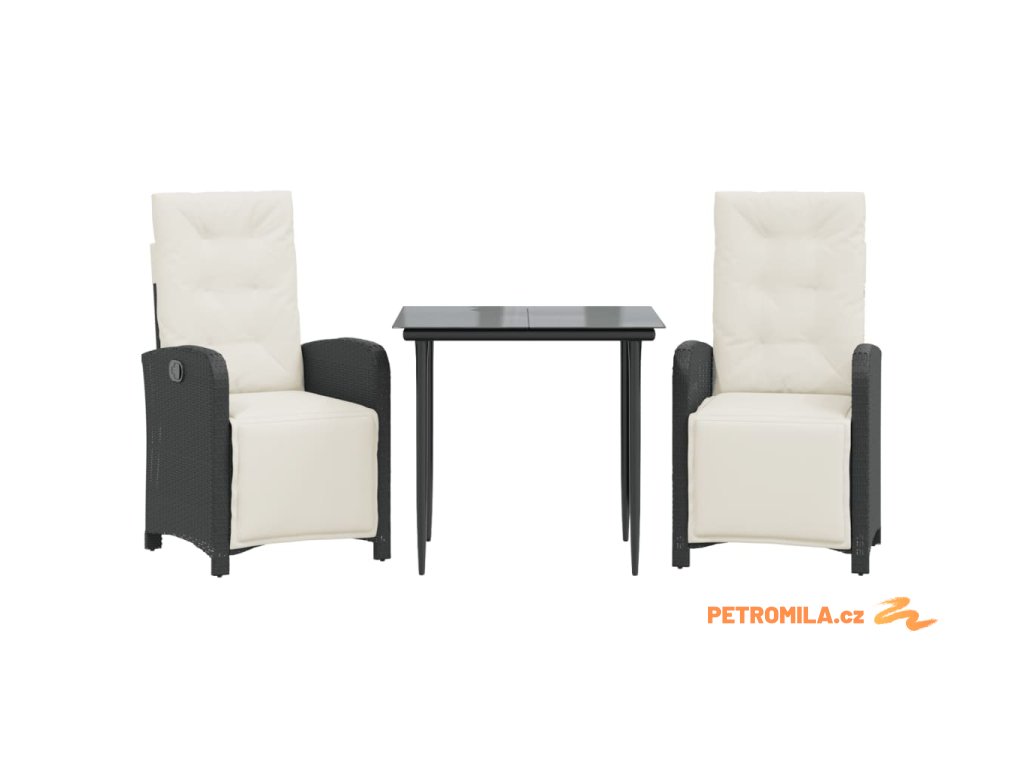 3dílný bistro set s poduškami černý polyratan