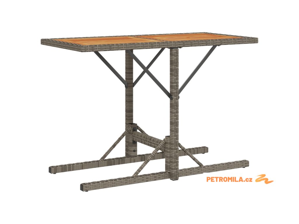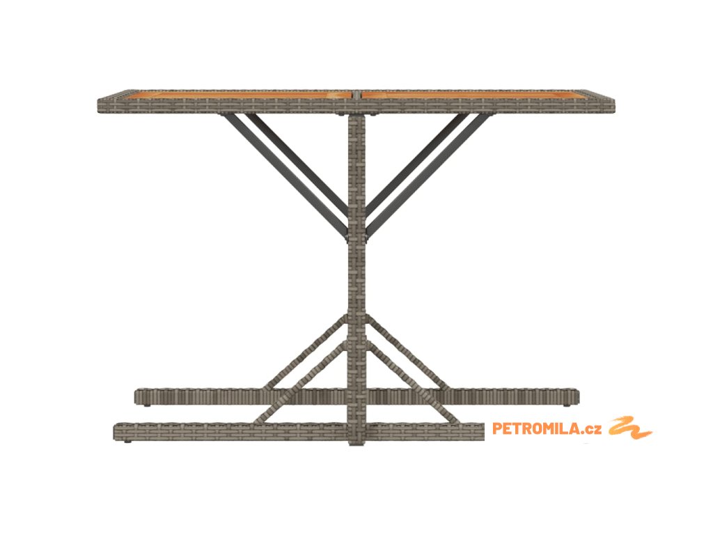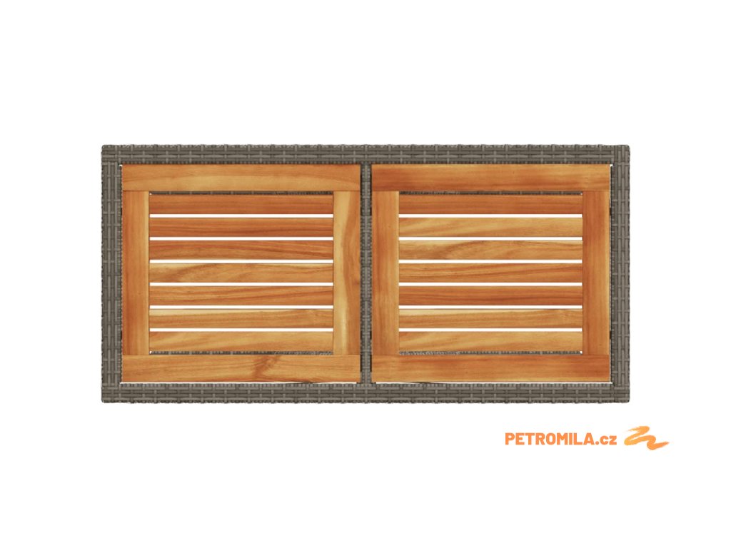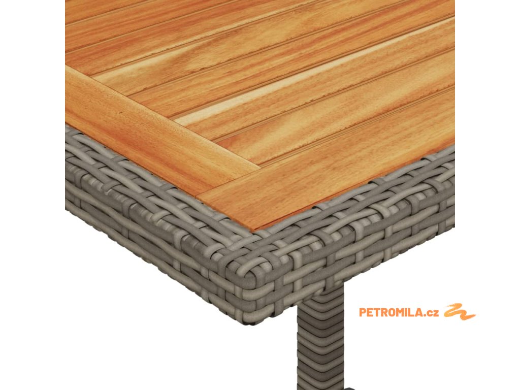 - Materiál: PE ratan, práškově lakovaná ocel, masivní akáciové dřevo s olejovou povrchovou úpravou