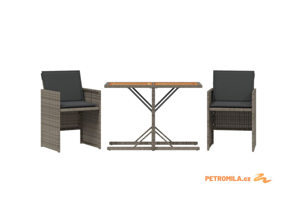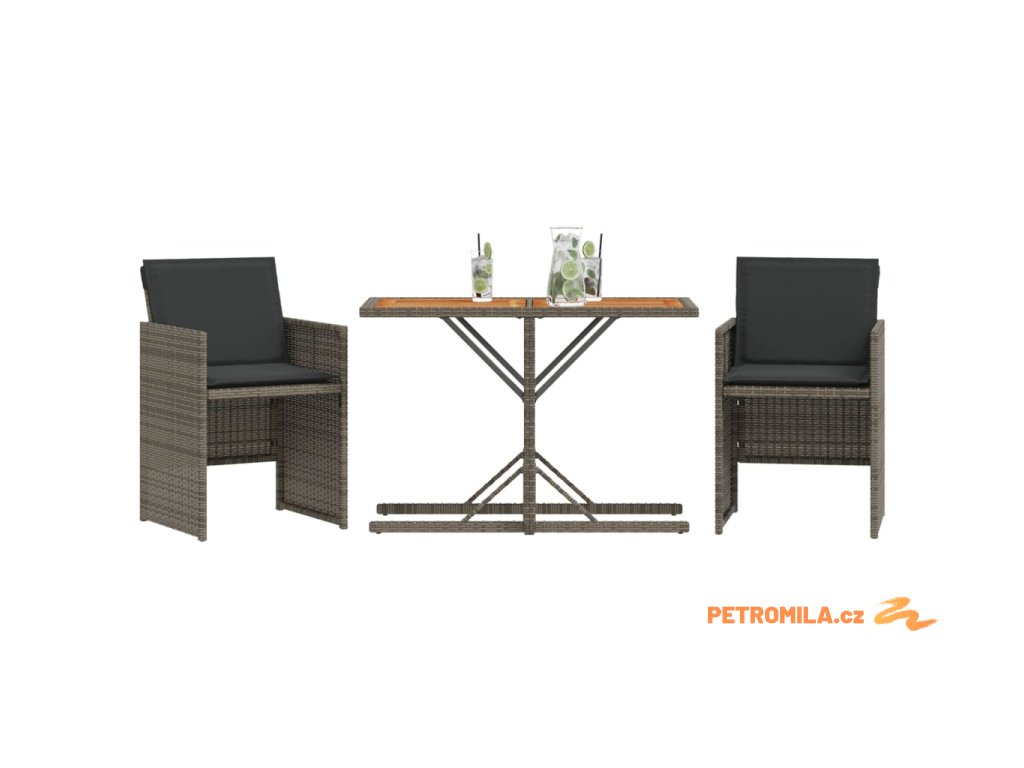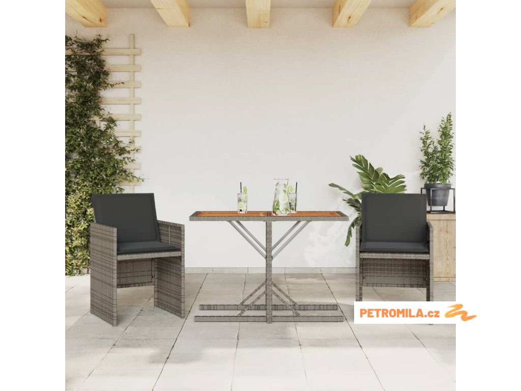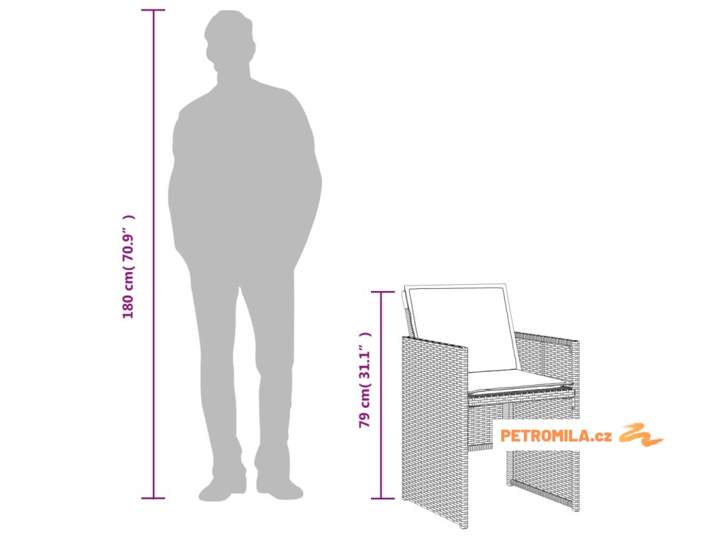 - Materiál: PE ratan, práškově lakovaná ocel, masivní akáciové dřevo s olejovou povrchovou úpravou