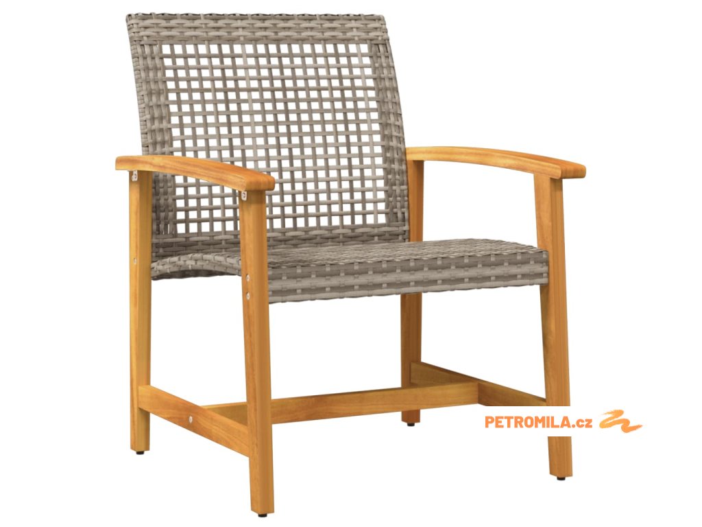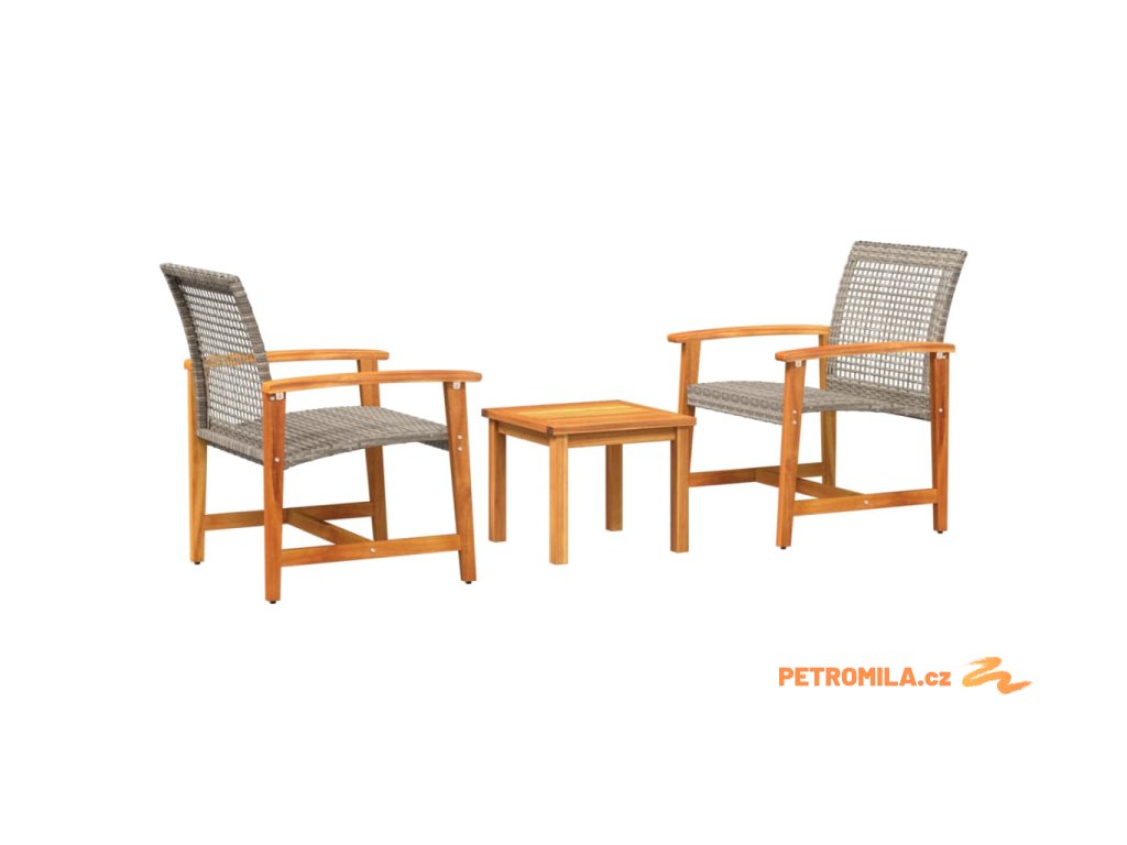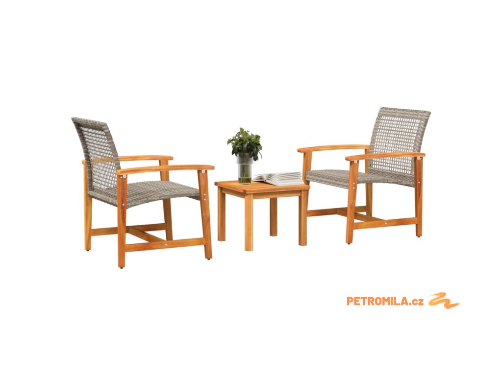 3dílný bistro set šedý polyratan a akáciové dřevo